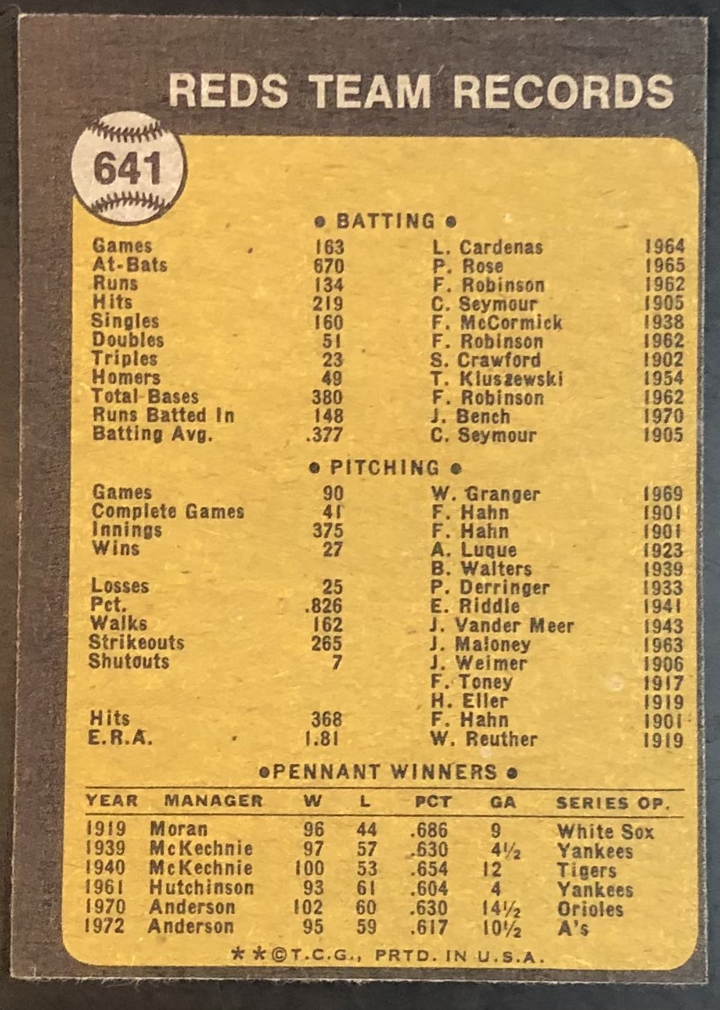Lot 958 1973 TOPPS CINCINNATI REDS
