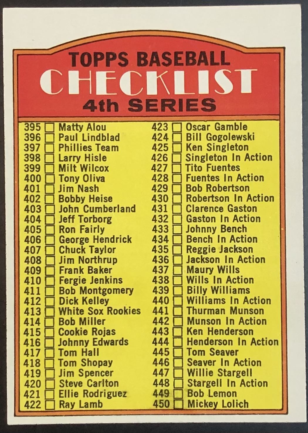 Lot 961 1972 TOPPS 4th SERIES CHECKLIST