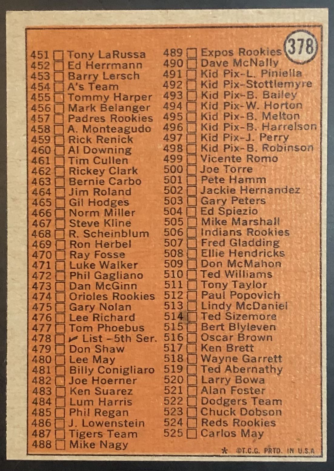Card #378 MLB, baseball, vintage