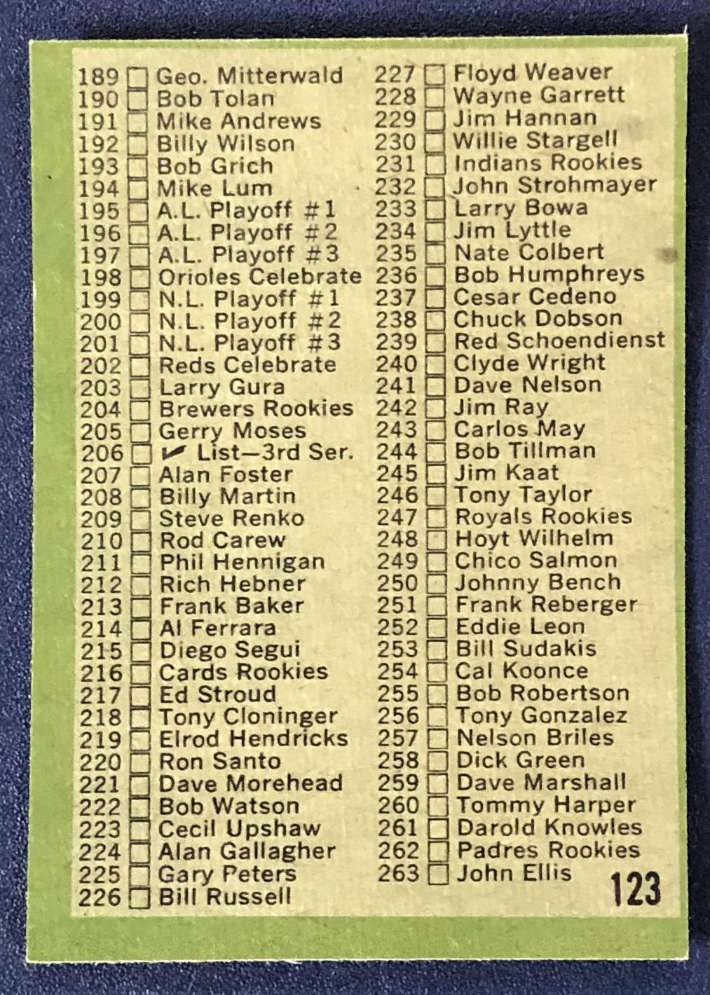 Lot 975 1971 TOPPS 2nd SERIES CHECKLIST