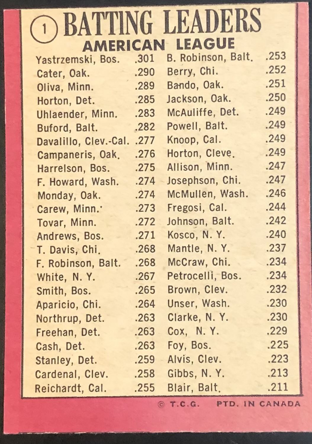 Card #1 MLB, baseball, vintage, OPC, hall of fame