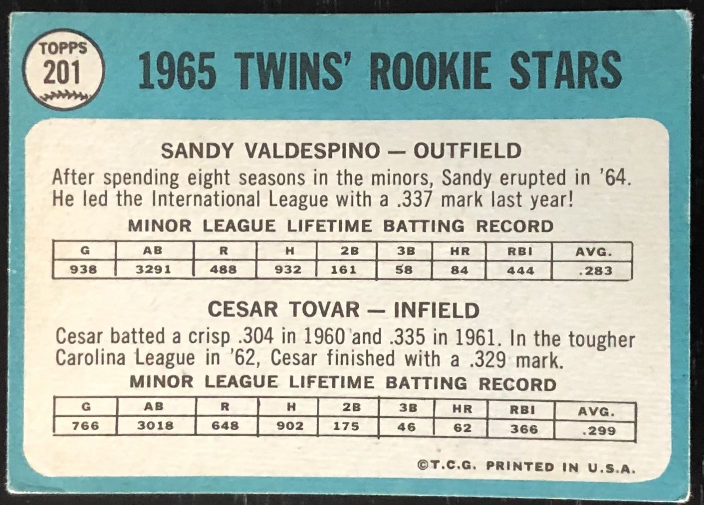 Card #201 vintage, MLB, baseball, rookie