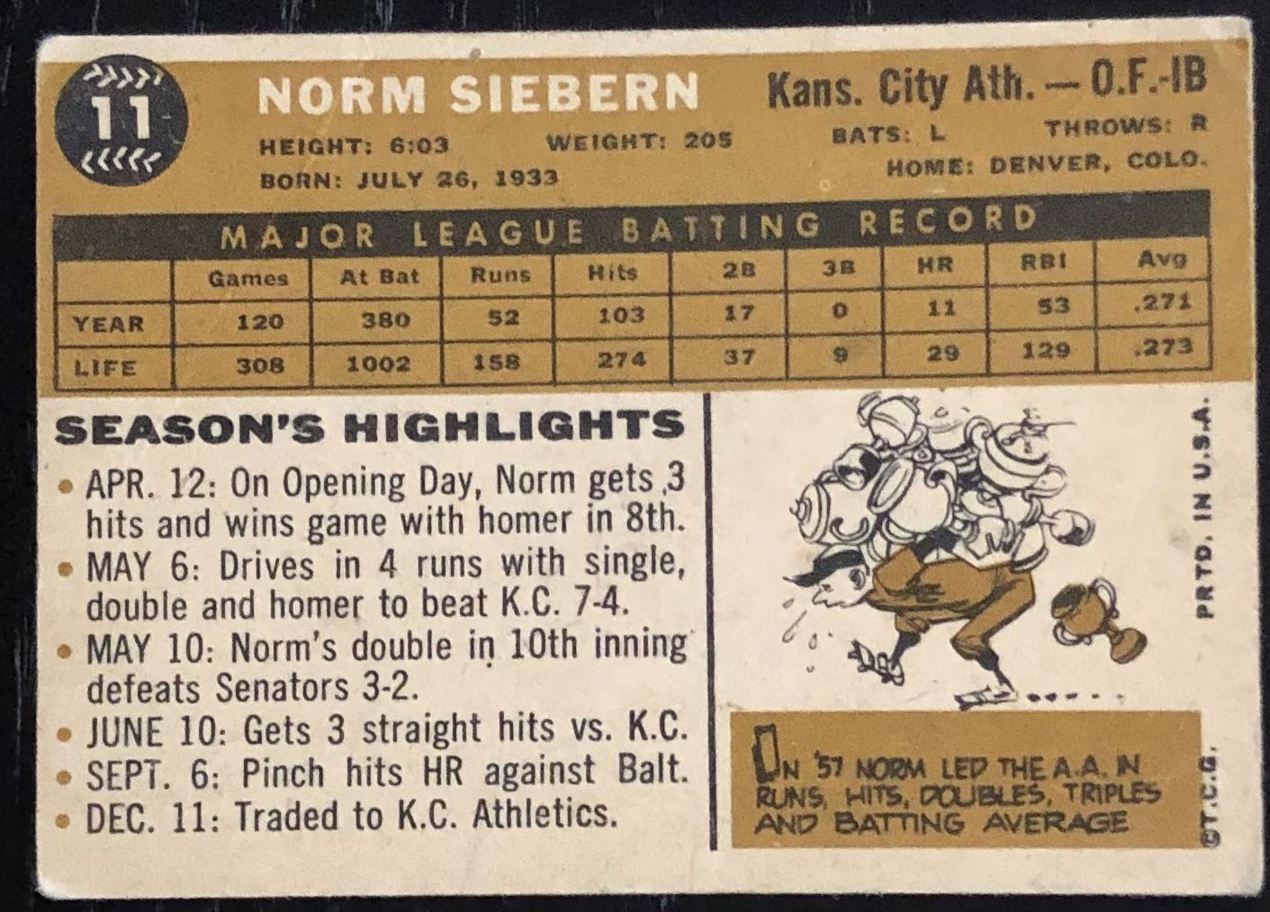 Lot 1097 1960 TOPPS NORM SIEBERN
