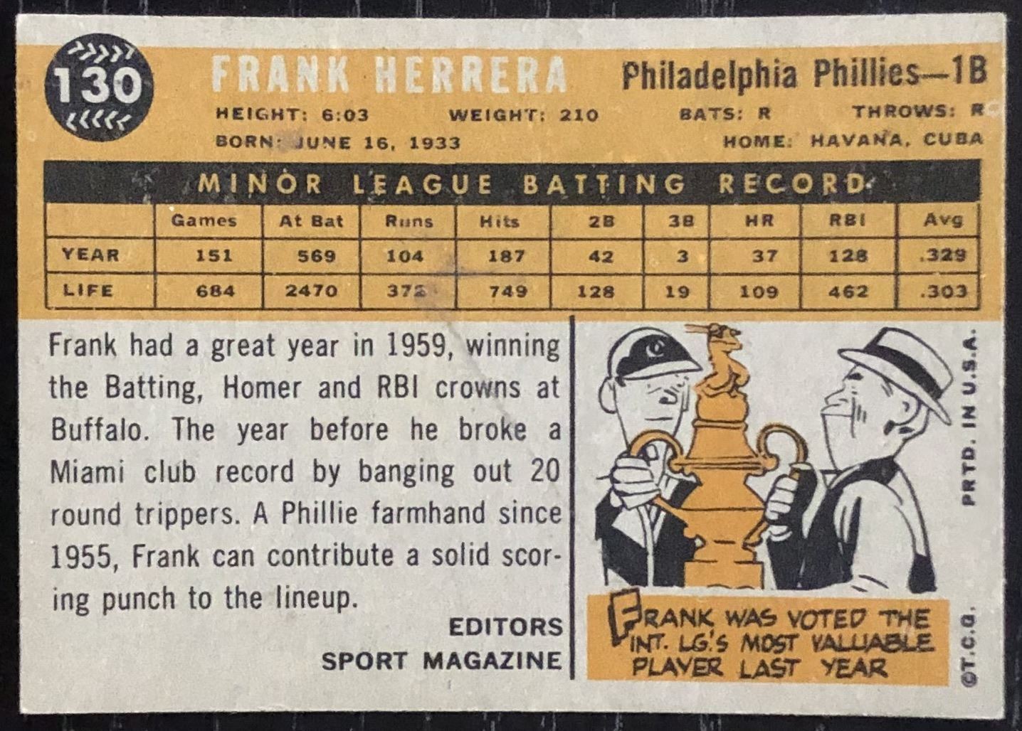 Lot 1130 1960 TOPPS GRAY BACKS FRANK HERRERA
