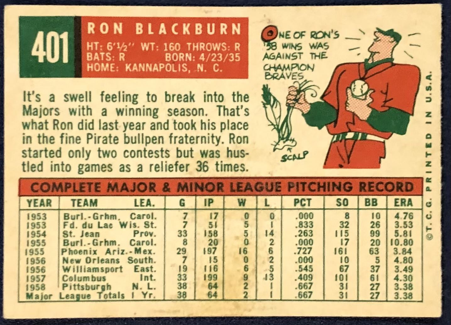 Lot 1172 1959 TOPPS WHITE BACKS RON BLACKBURN ROOKIE CARD