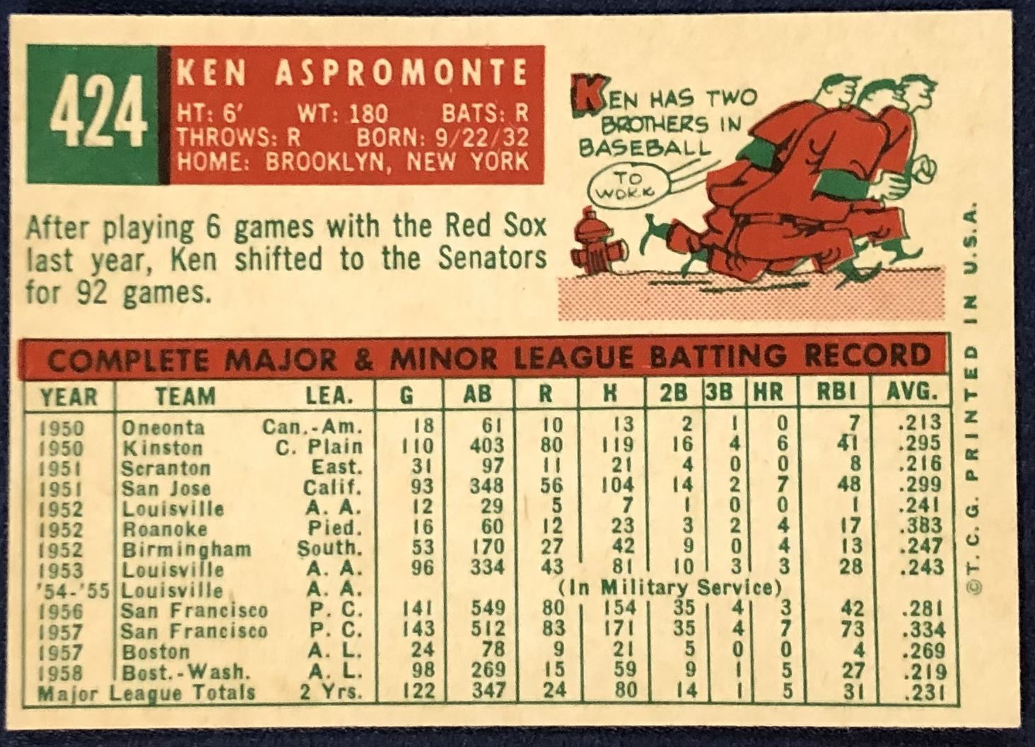 Lot 1176 1959 TOPPS WHITE BACKS KEN ASPROMONTE