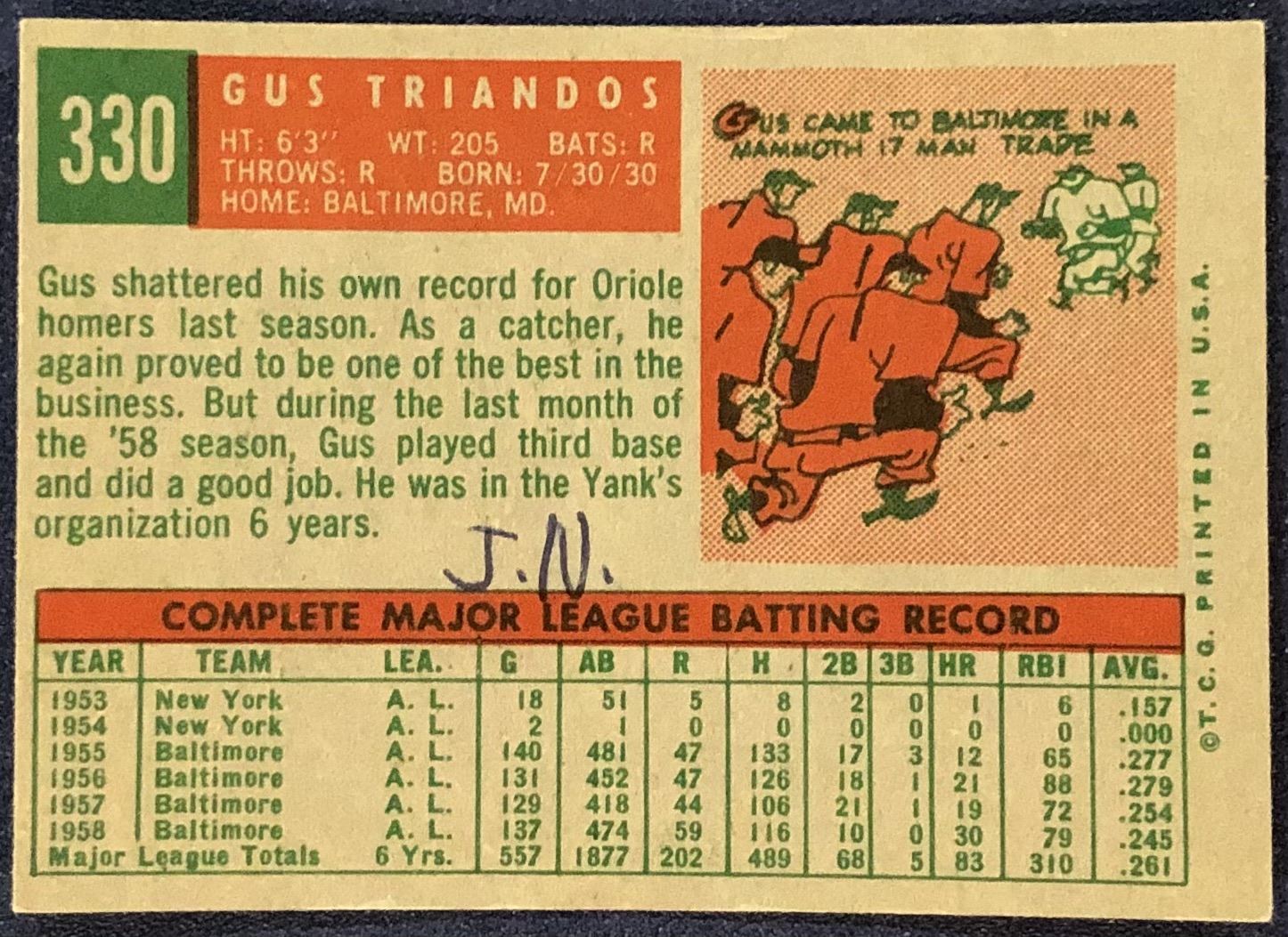 Lot 1216 1959 TOPPS GRAY BACKS GUS TRIANDOS