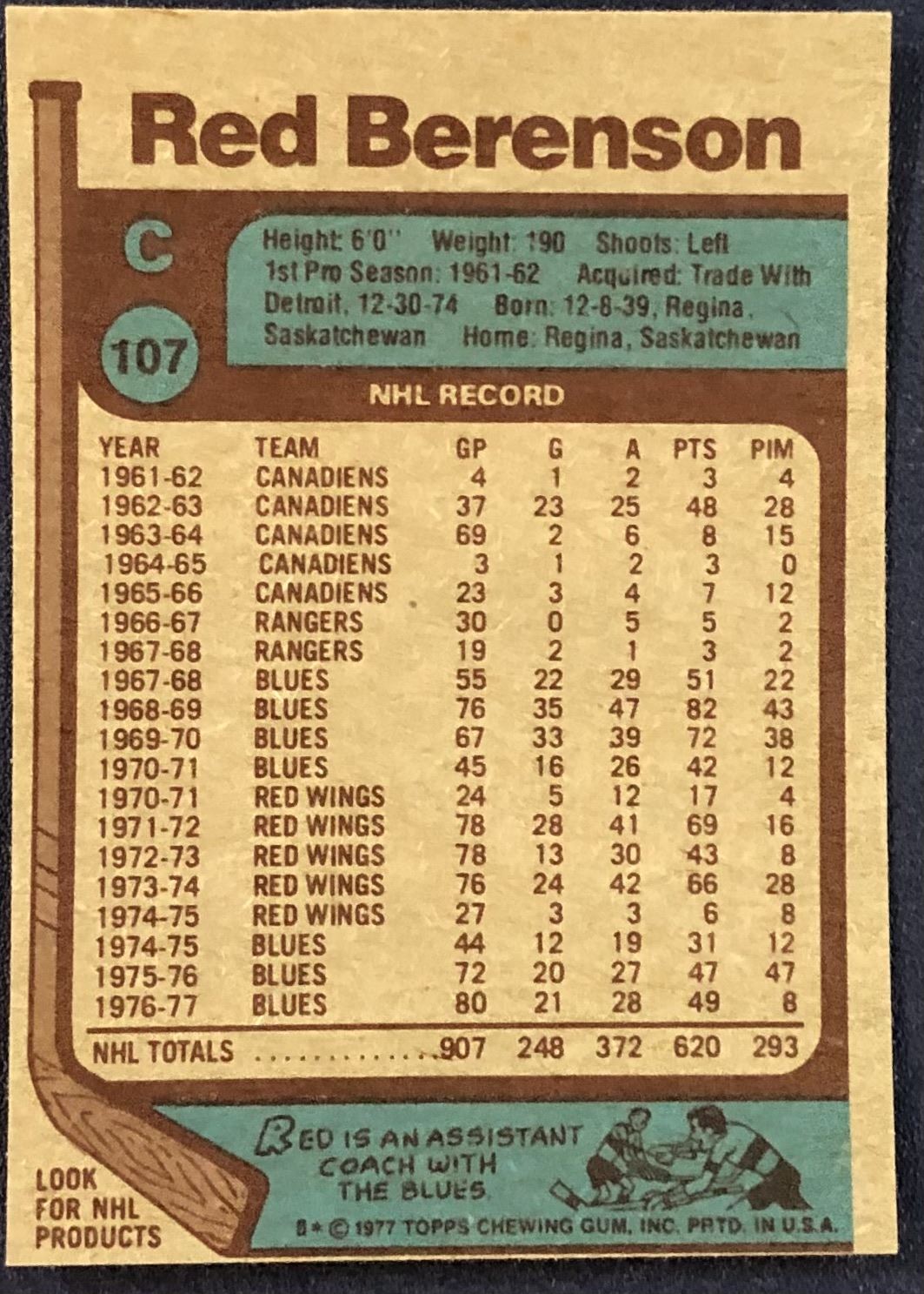 Lot 1272 1977-78 TOPPS NHL RED BERENSON