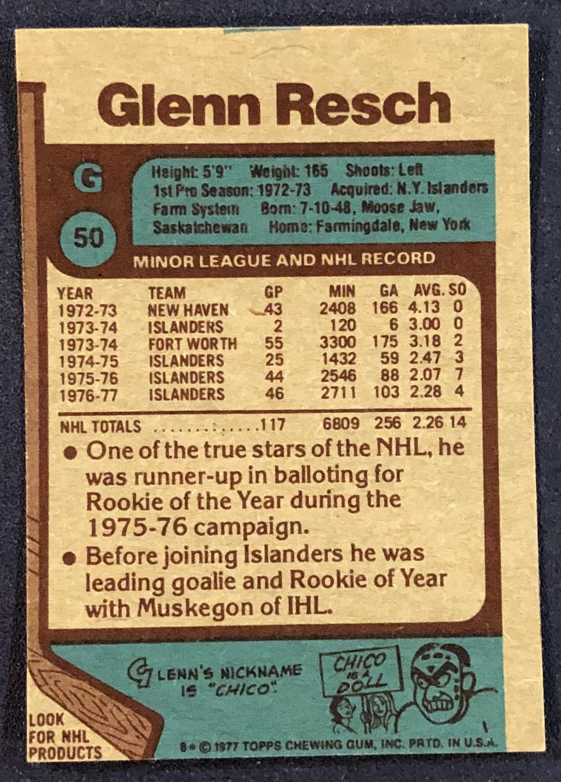 Lot 1291 1977-78 TOPPS NHL CHICO RESCH