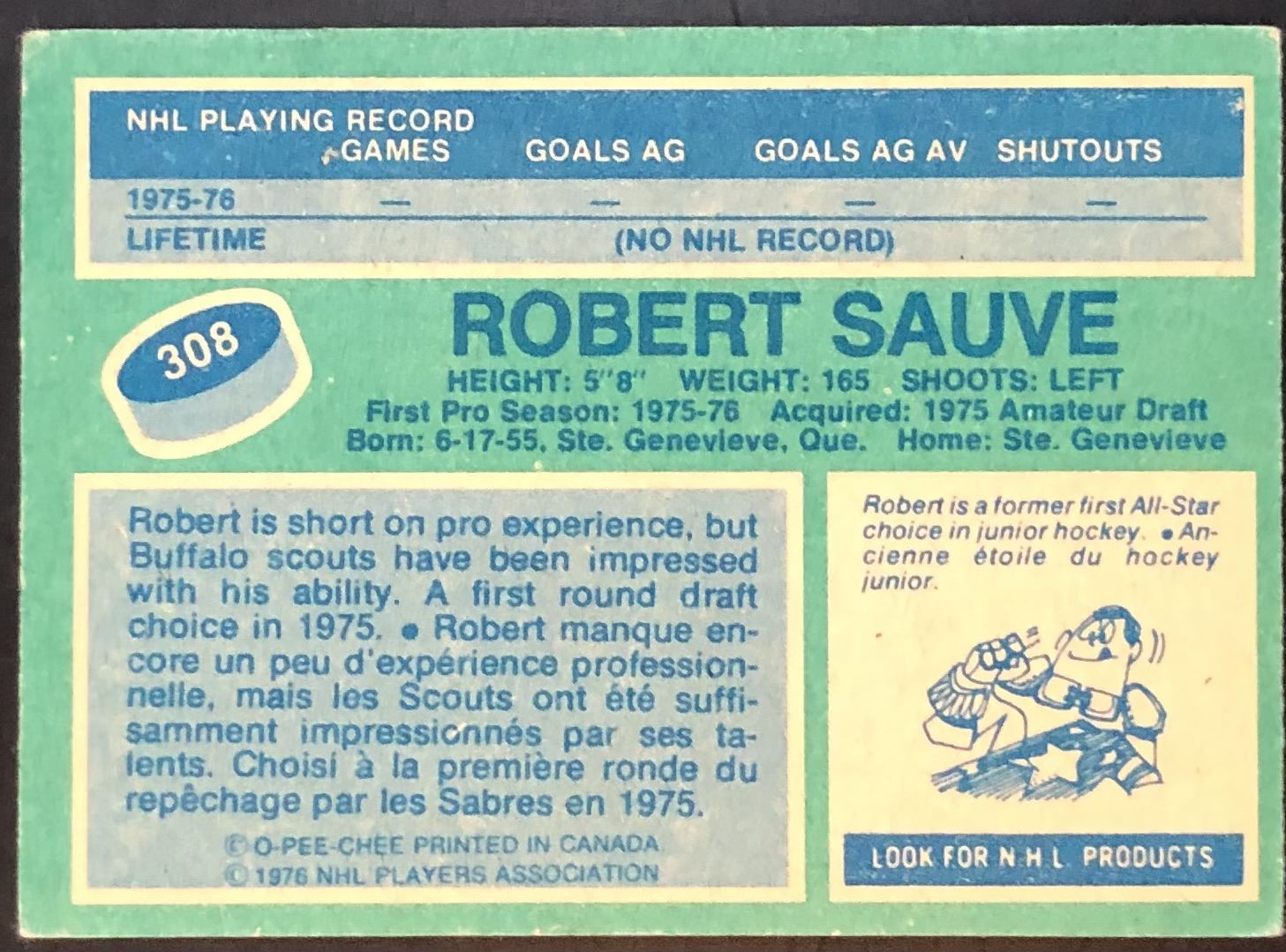 Lot 1311 1976-77 NHL O-PEE-CHEE BOB SAUVE ROOKIE CARD