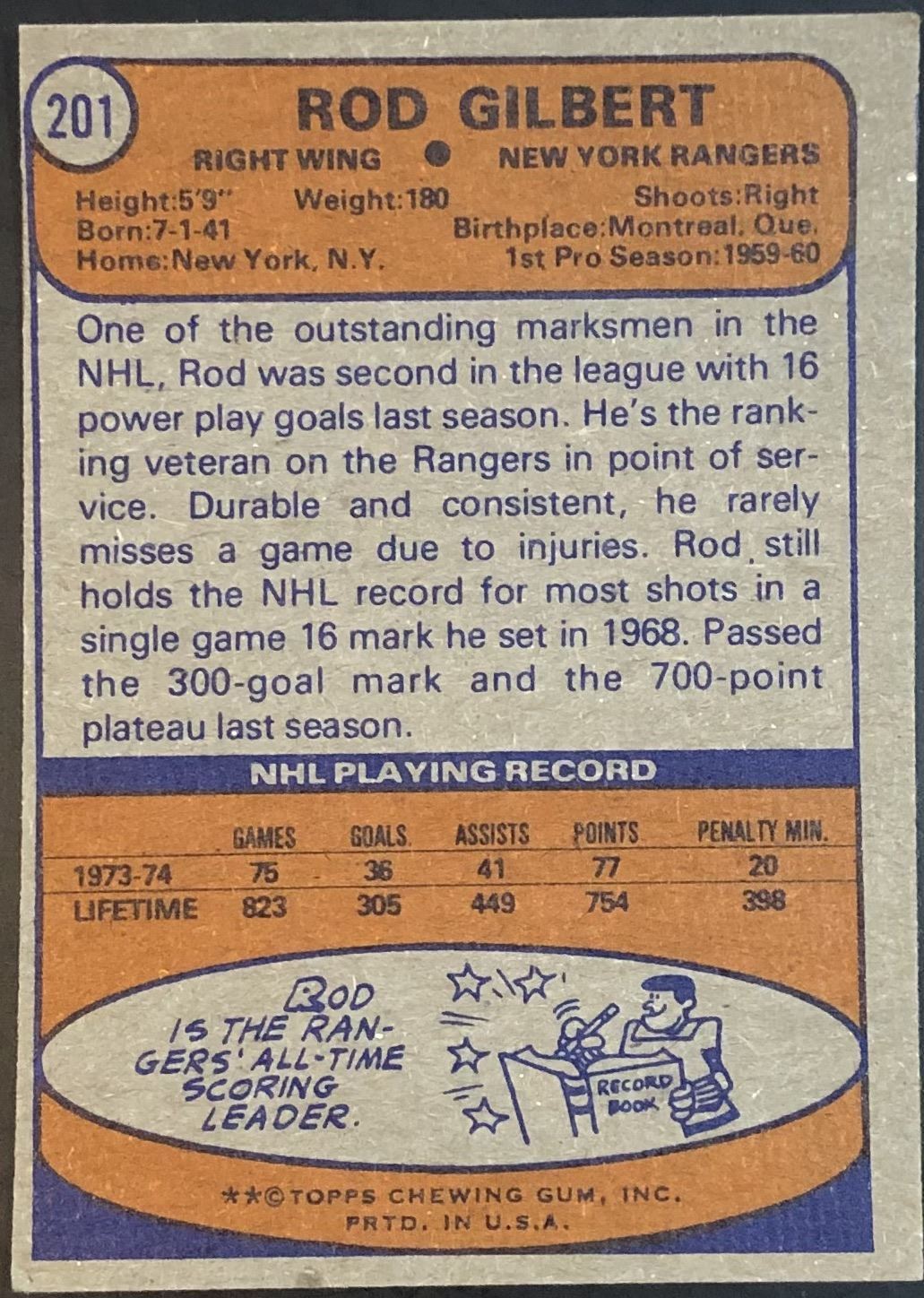 Card #201 NHL, hockey, vintage, hall of fame