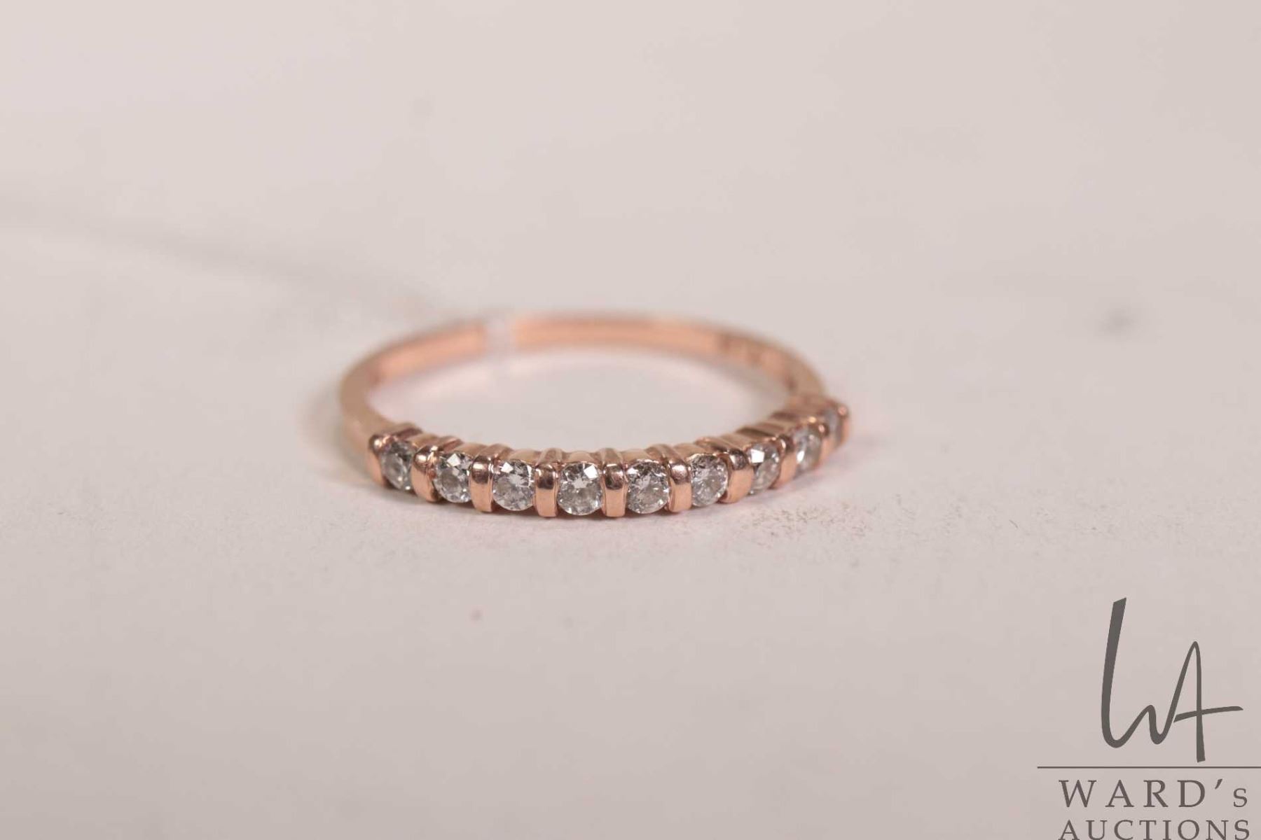 Lot 10 14kt rose gold and diamond band, 1.5 grams, size 6.5