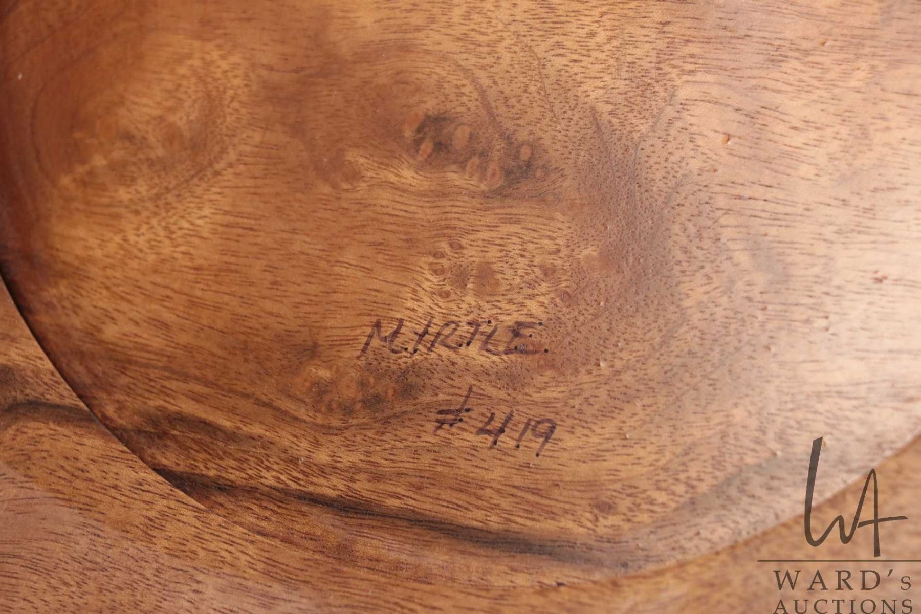Lot 21 Brian McEvoy, artisan made decorative Myrtle wood with live edge, turned three section tray, numbere