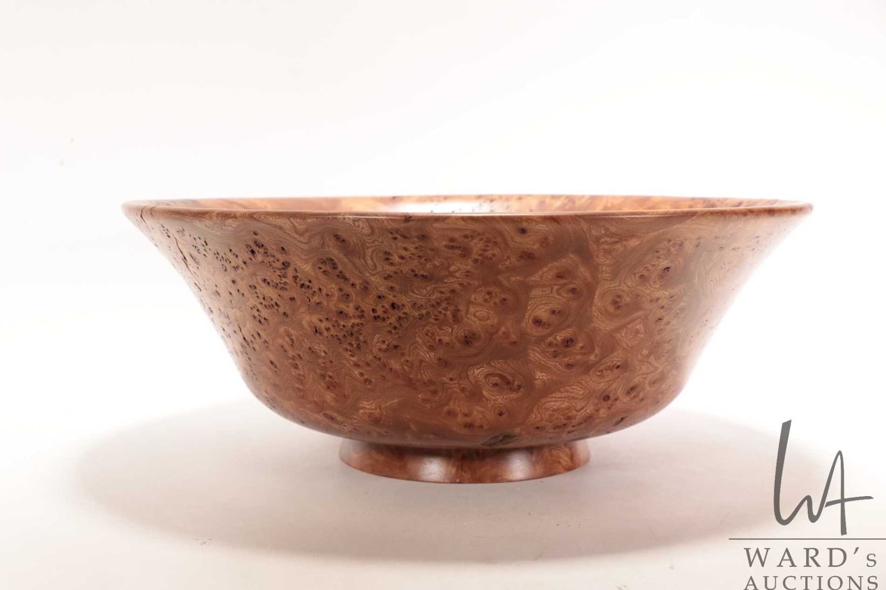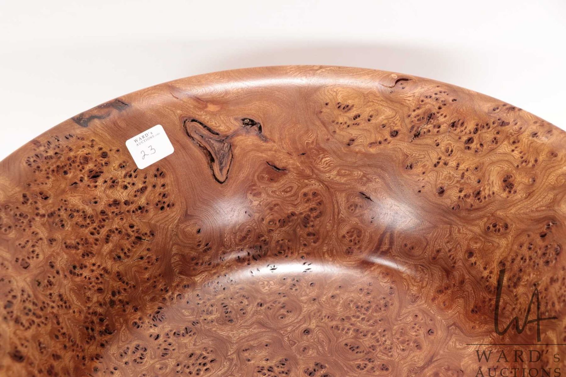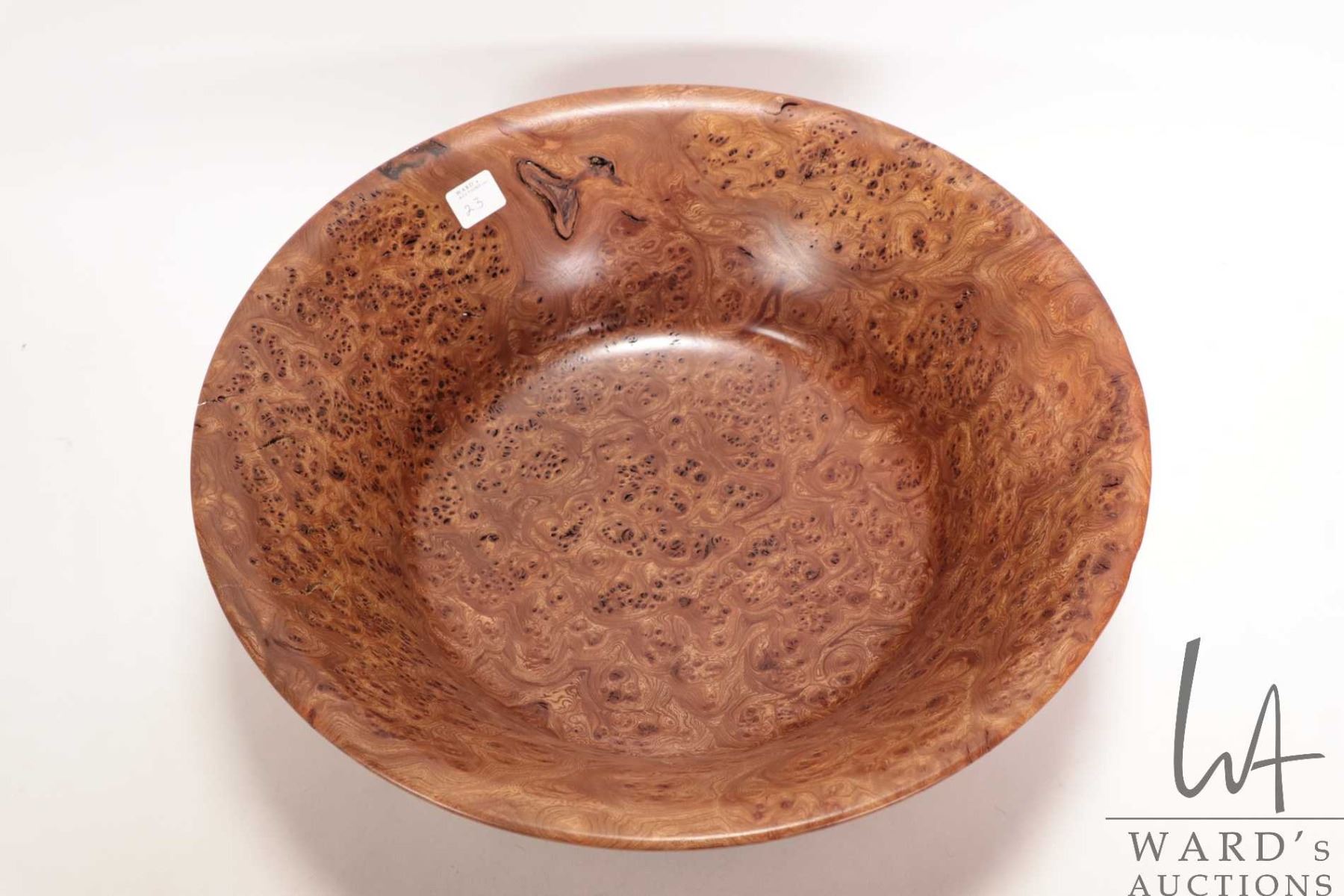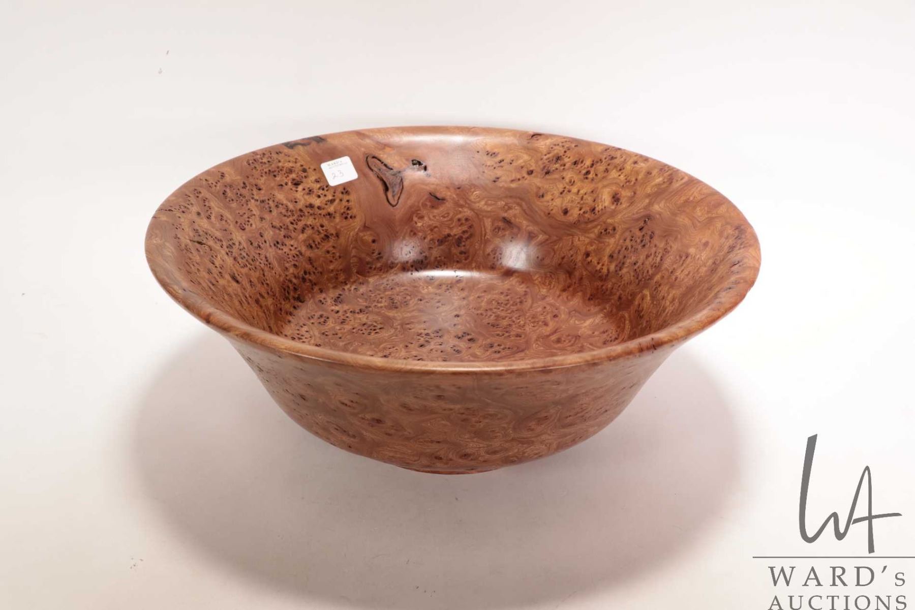 Lot 23 Brian McEvoy, artisan made decorative Carpathian Elm turned bowl, 15" in diameter X 6" in height. Si