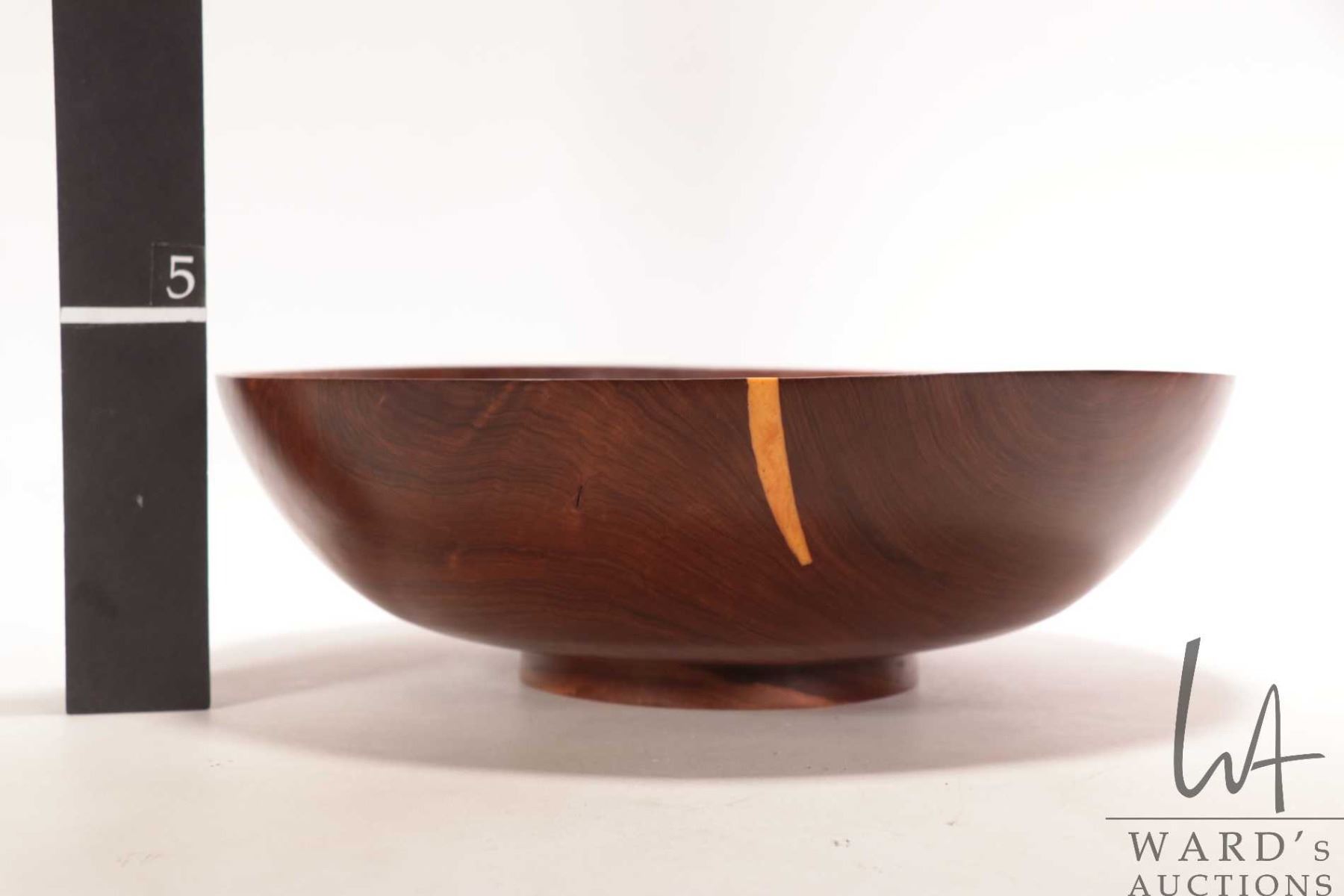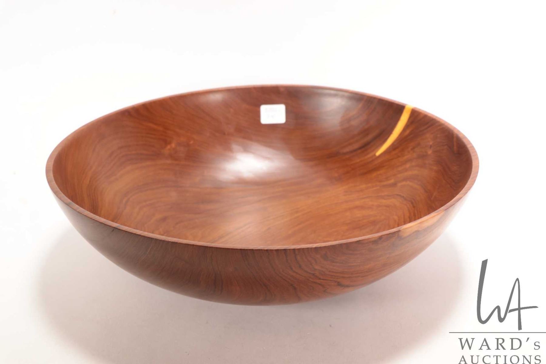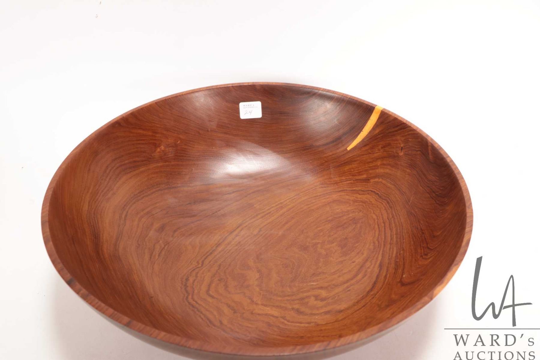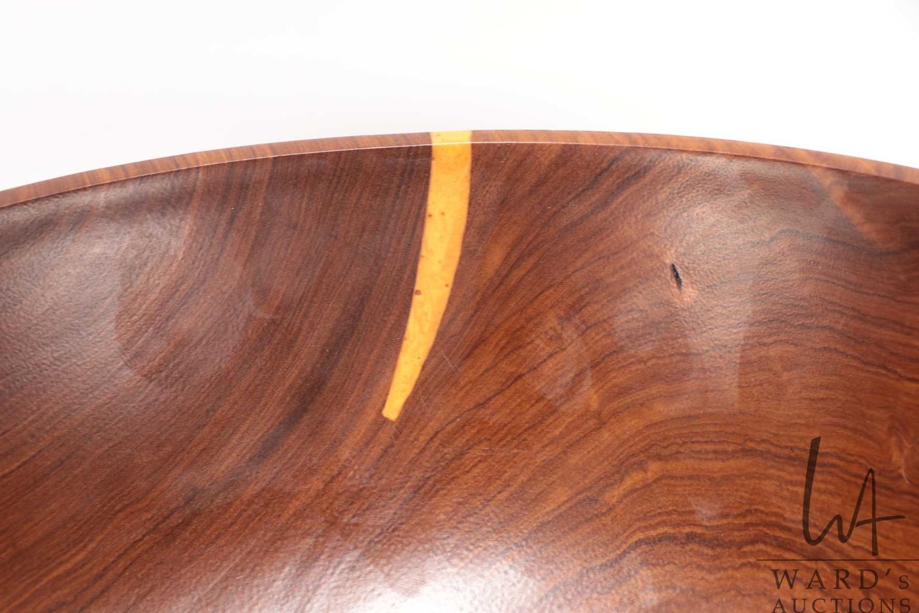 Lot 24 Brian McEvoy, artisan made decorative Fustic turned wooden bowl, 14" in diameter, 4 1/2' in height.