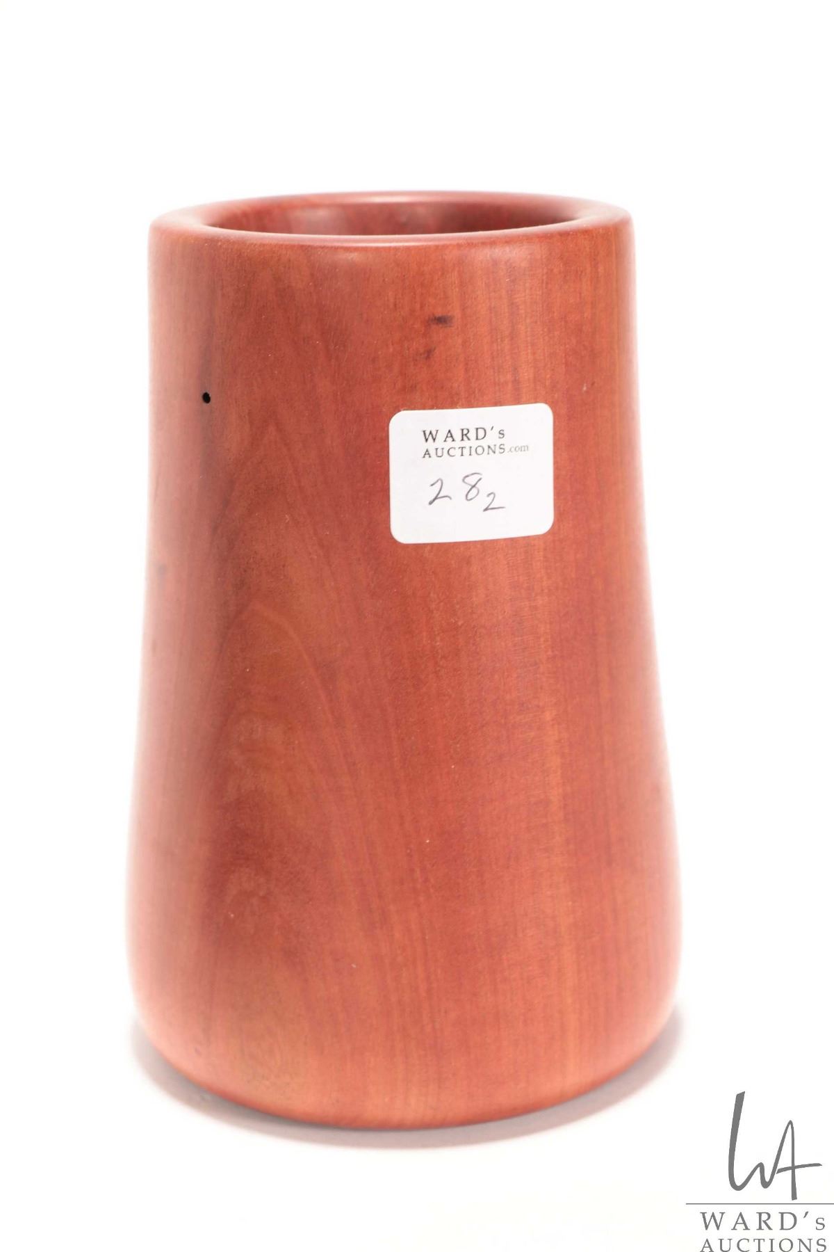 Lot 28 Brian McEvoy, artisan made decorative Pink Ivory turned wooden 5 1/2" high vase. Initialed by artist