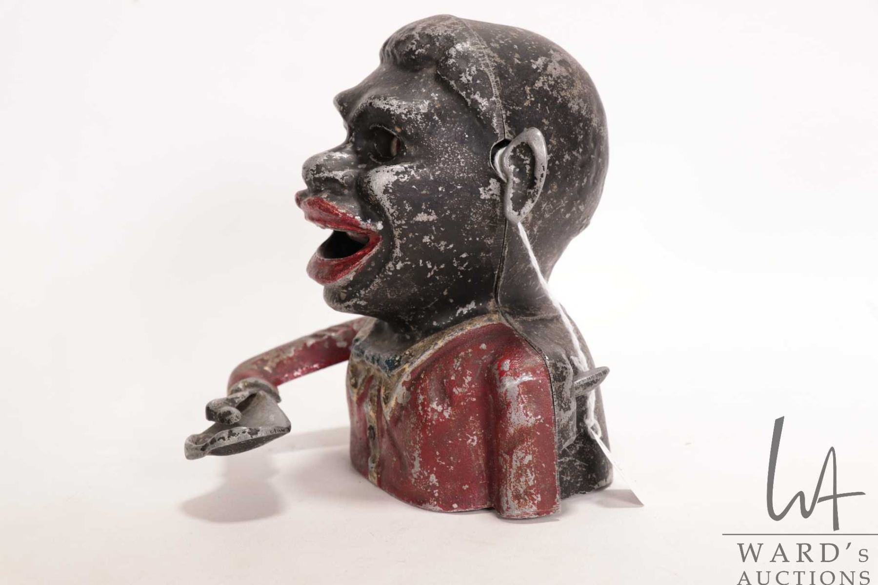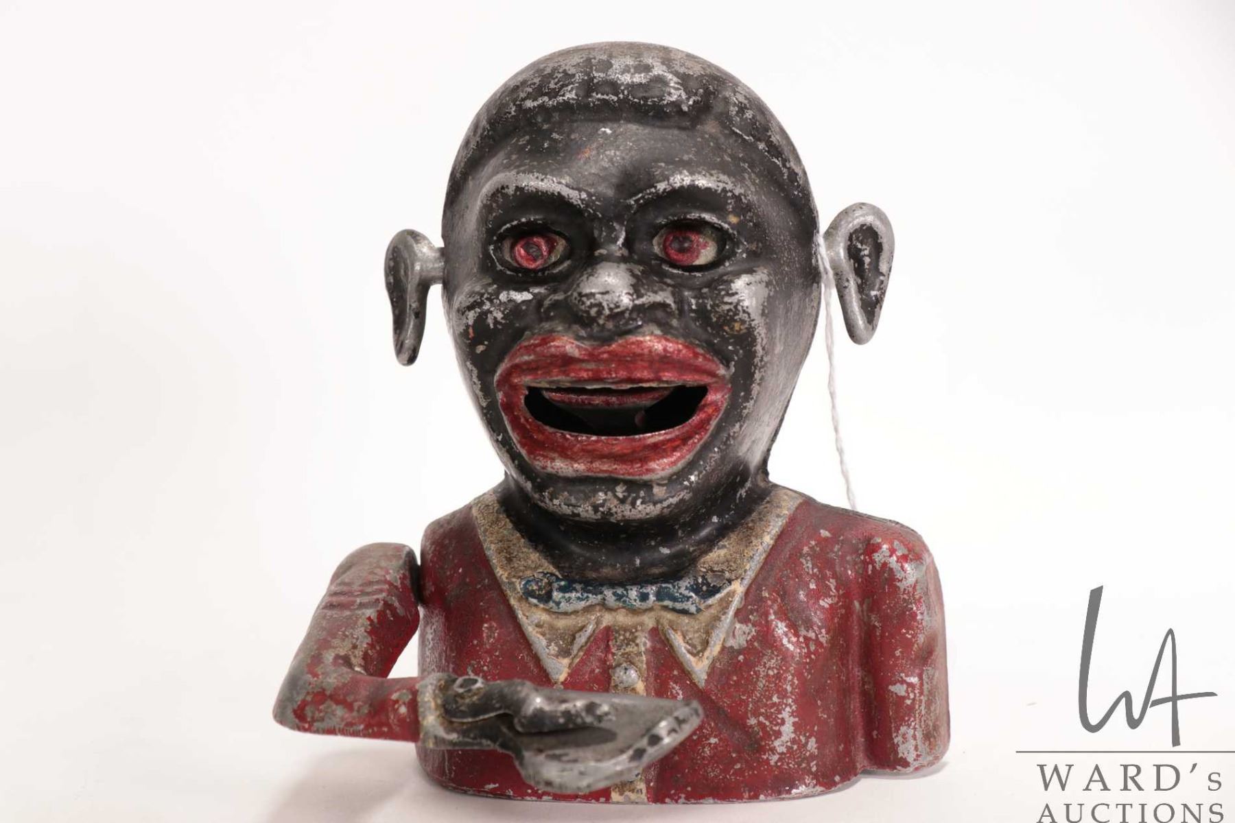 Lot 32 Antique black Americana mechanical money bank, 5 1/2" in height