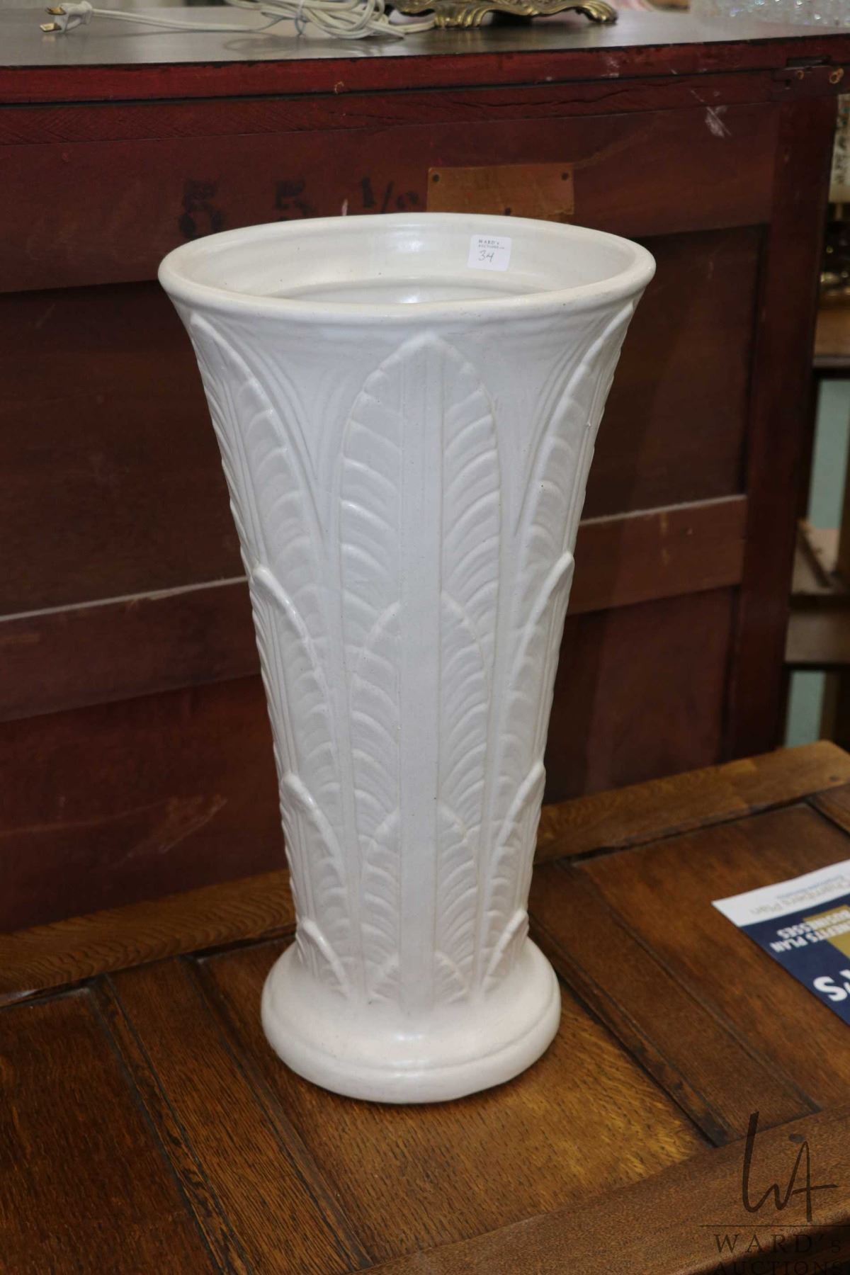 Lot 34 Vintage Roseville Ohio art pottery tall vase/ umbrella stand, 18 1/2" in height