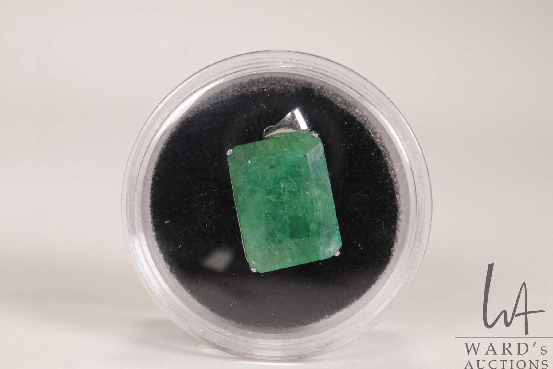 Lot 46 12.40 ct Zambian emerald, emerald cut gemstone in sterling silver mount with certificate provided by
