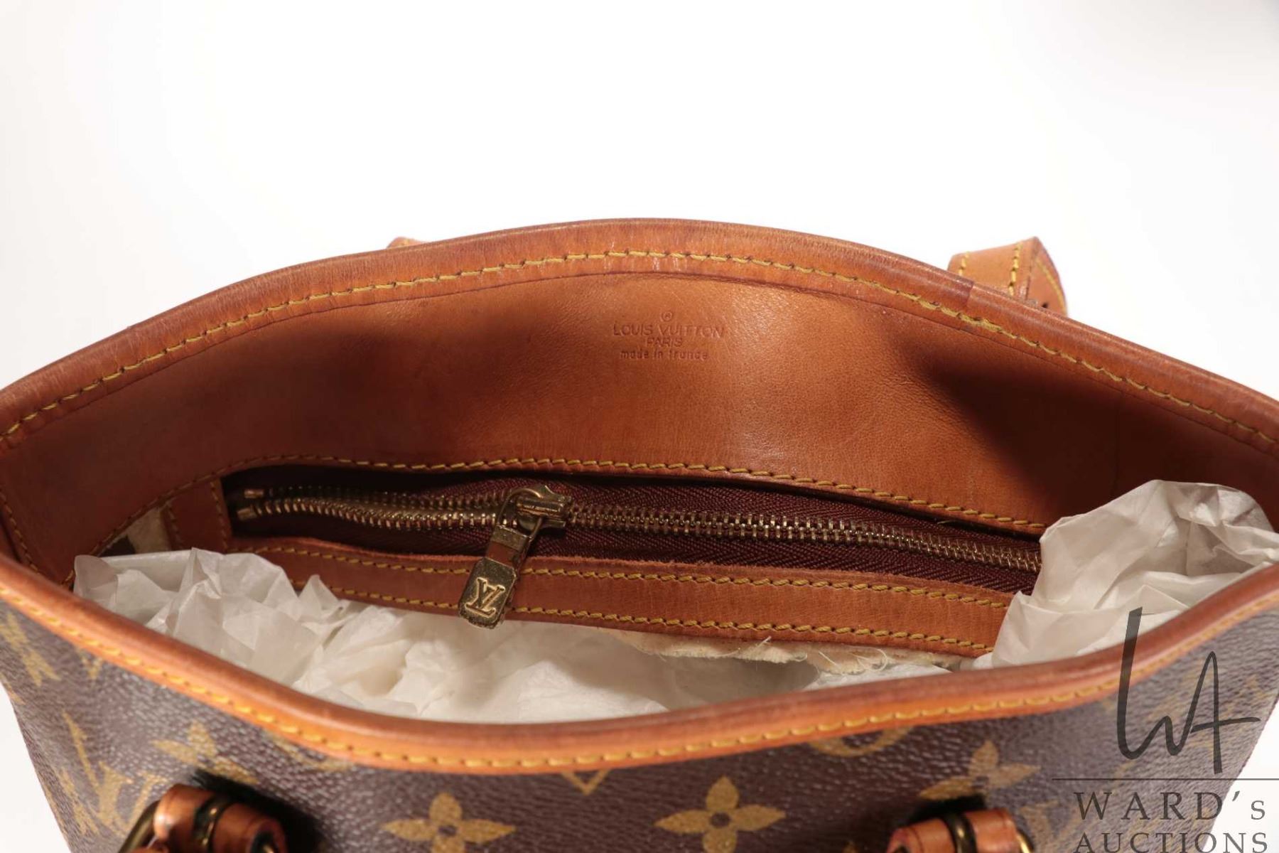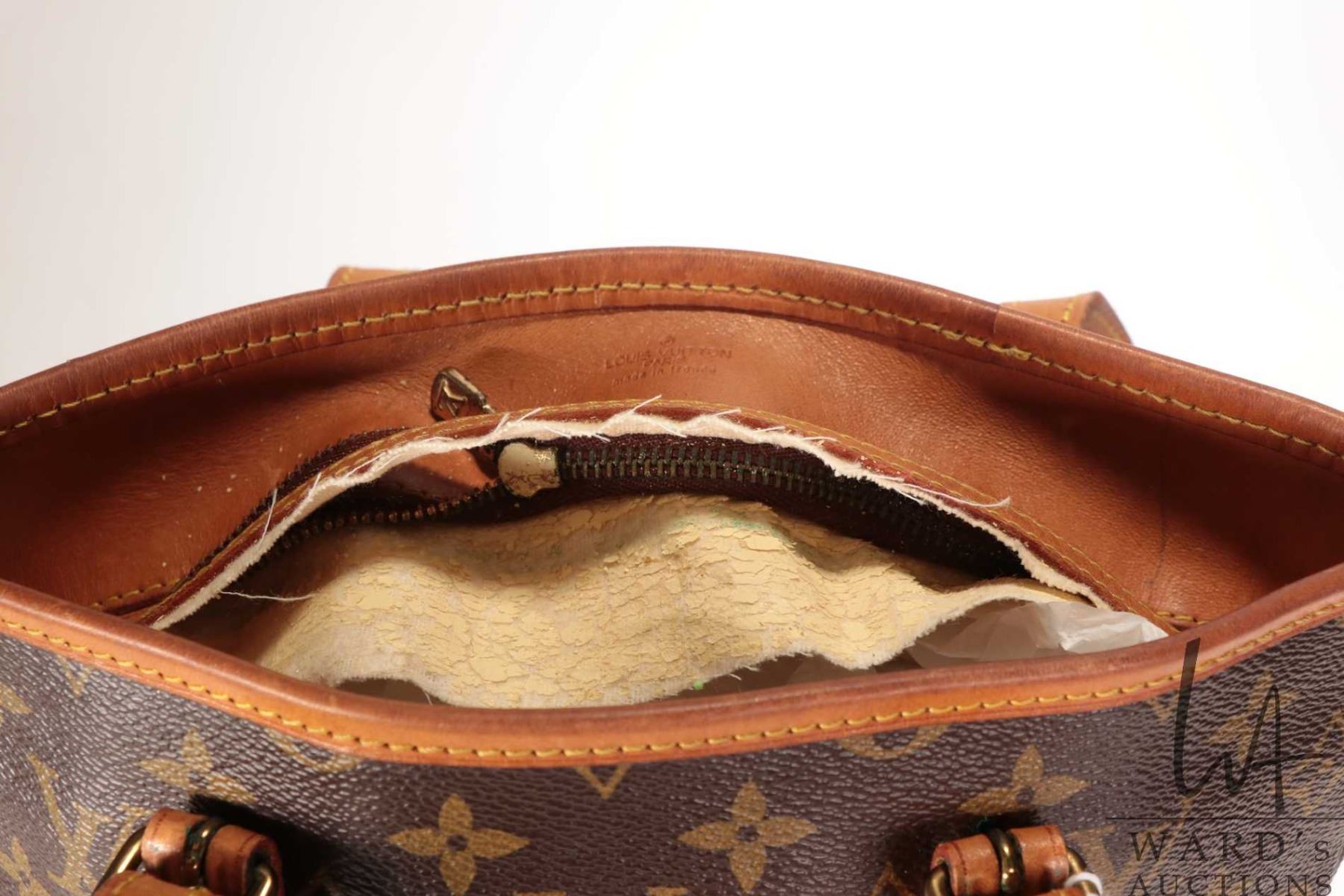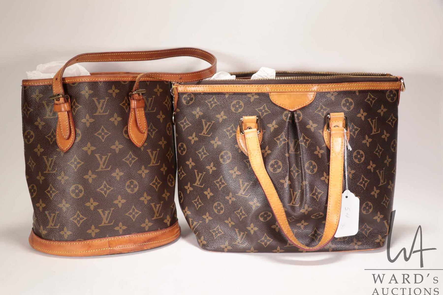 Two vintage Louis Vuitton bags including bucket tote, serial no. 9005 V.I. ( note: liner removed) and a Palermo, serial no. AR . 1009 ( missing one shoulder strap tab and shoulder strap). Note: Buyer must satisfy themselves as to authenticity. Feel free to contact auction house regarding images that you require that may have been overlooked during original cataloguing and photography