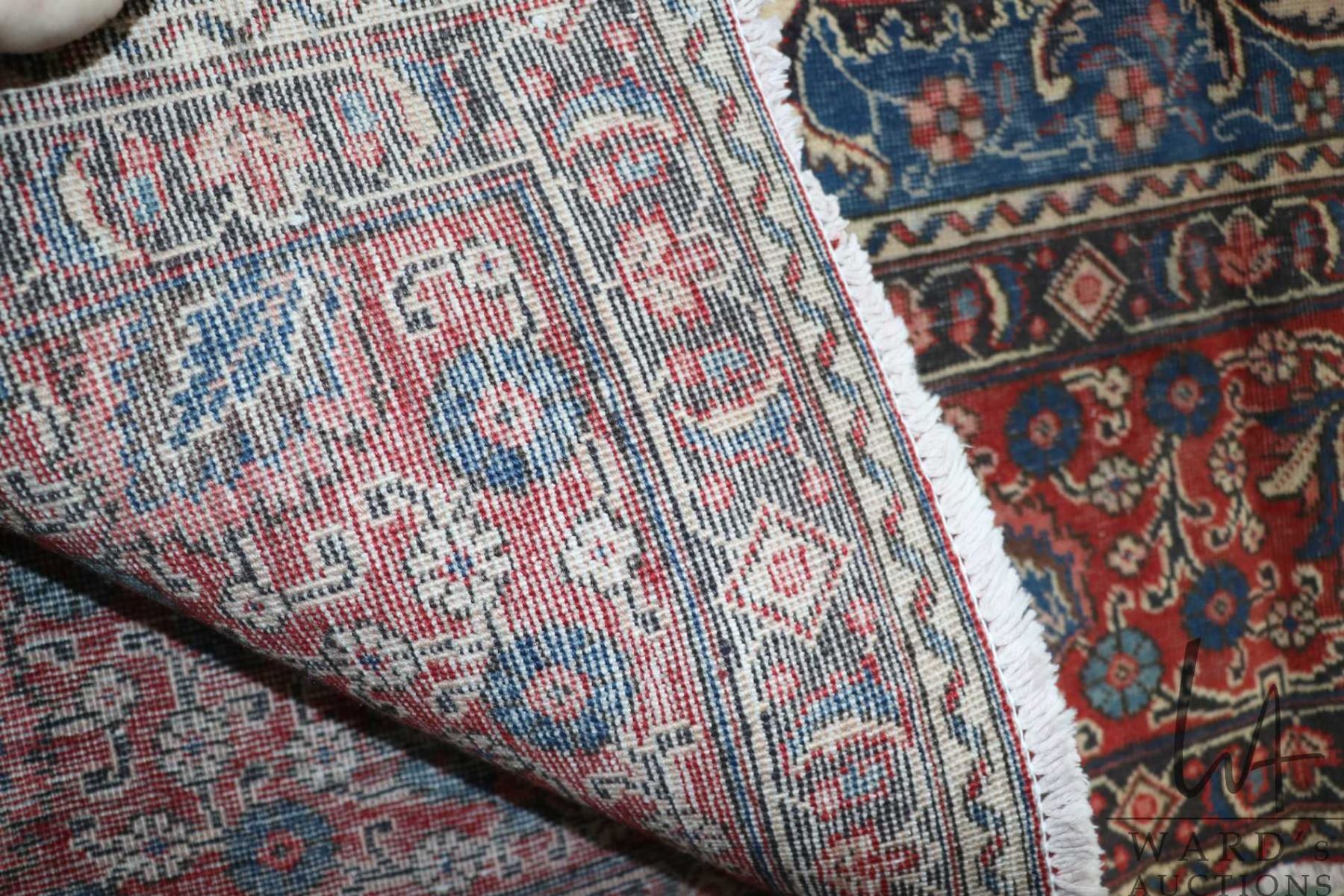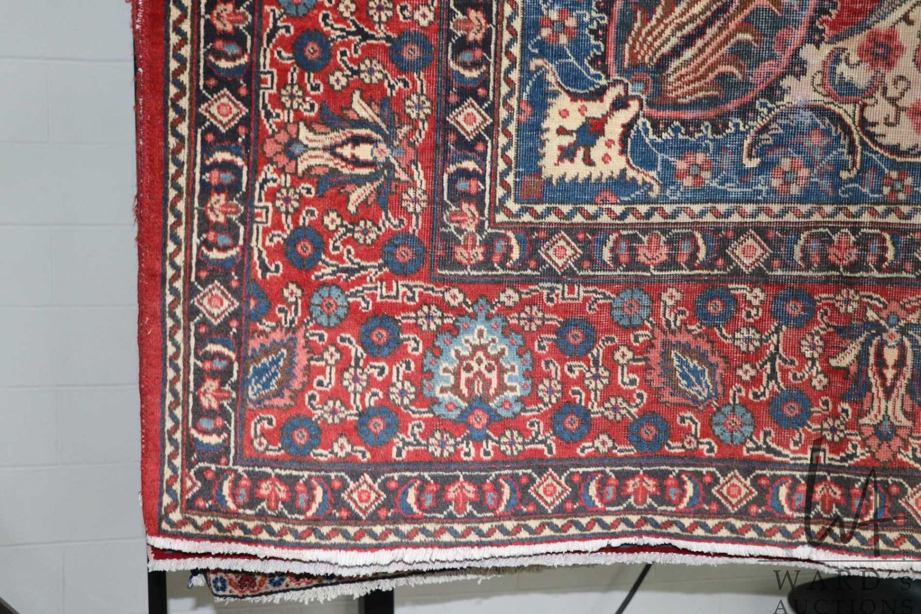 Lot 61 Iranian wool carpet "Tabriz" with center medallion, overall floral design on red background with hig