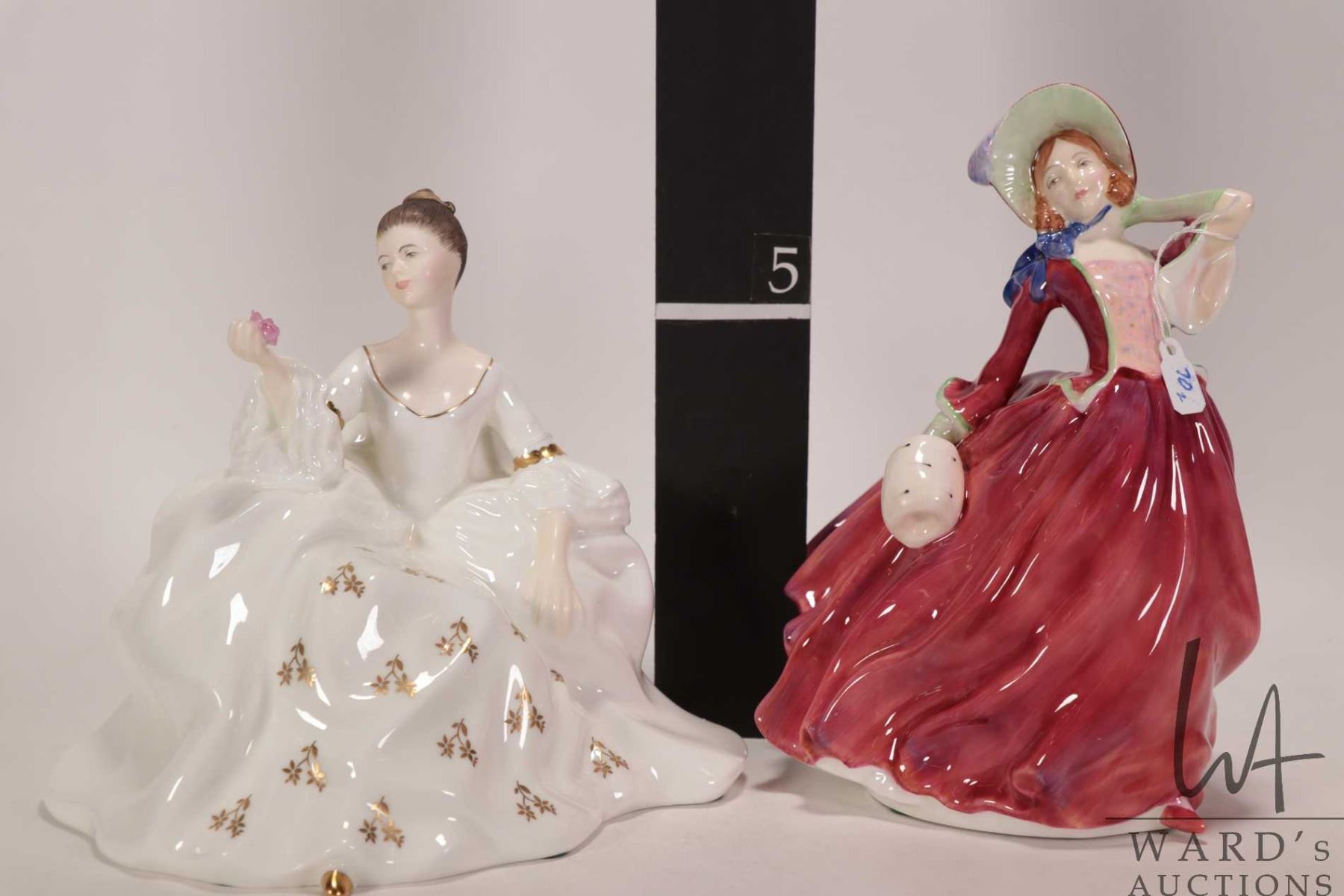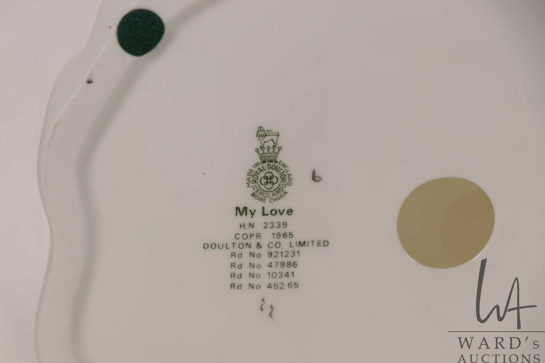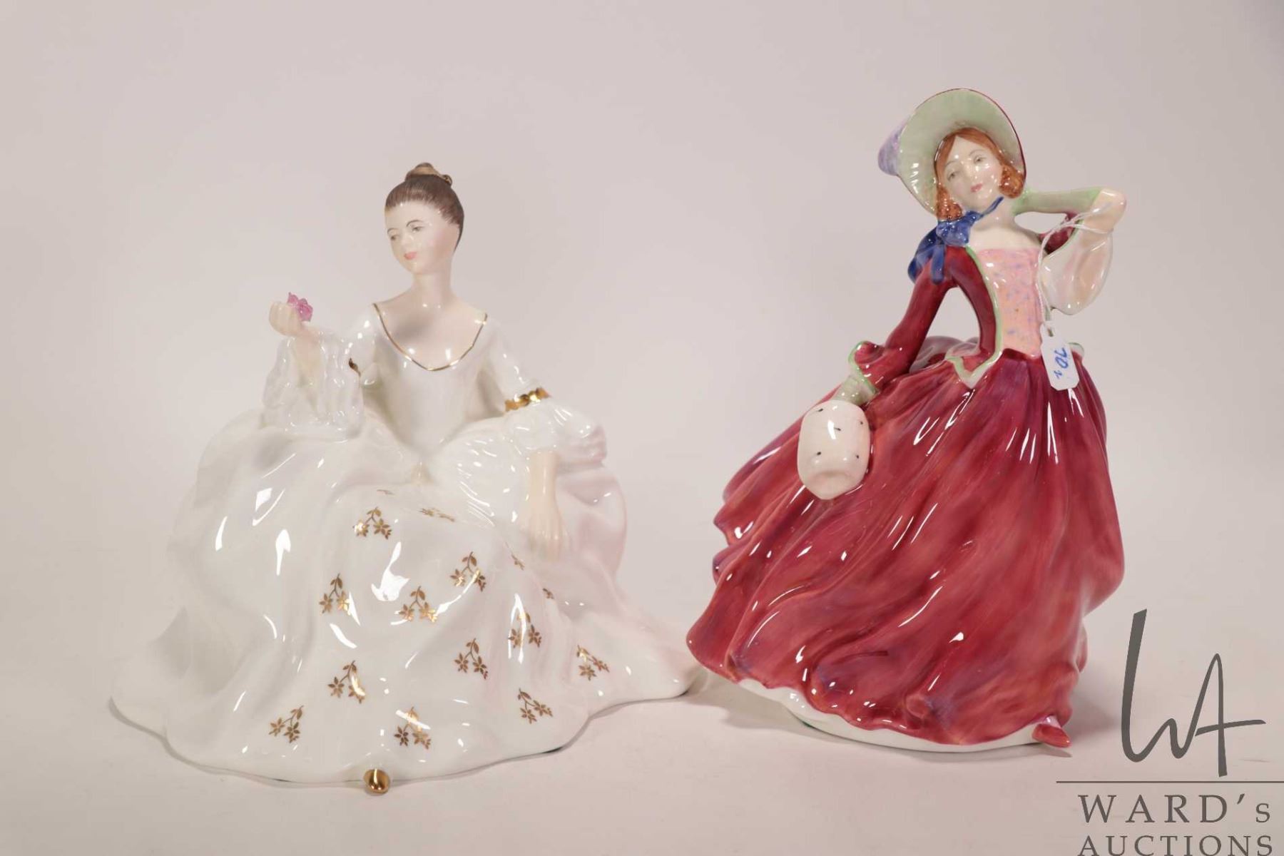 Lot 70 Two Royal Doulton figurines including "Autumn Breezes" HN1934 and "My Love" HN2339