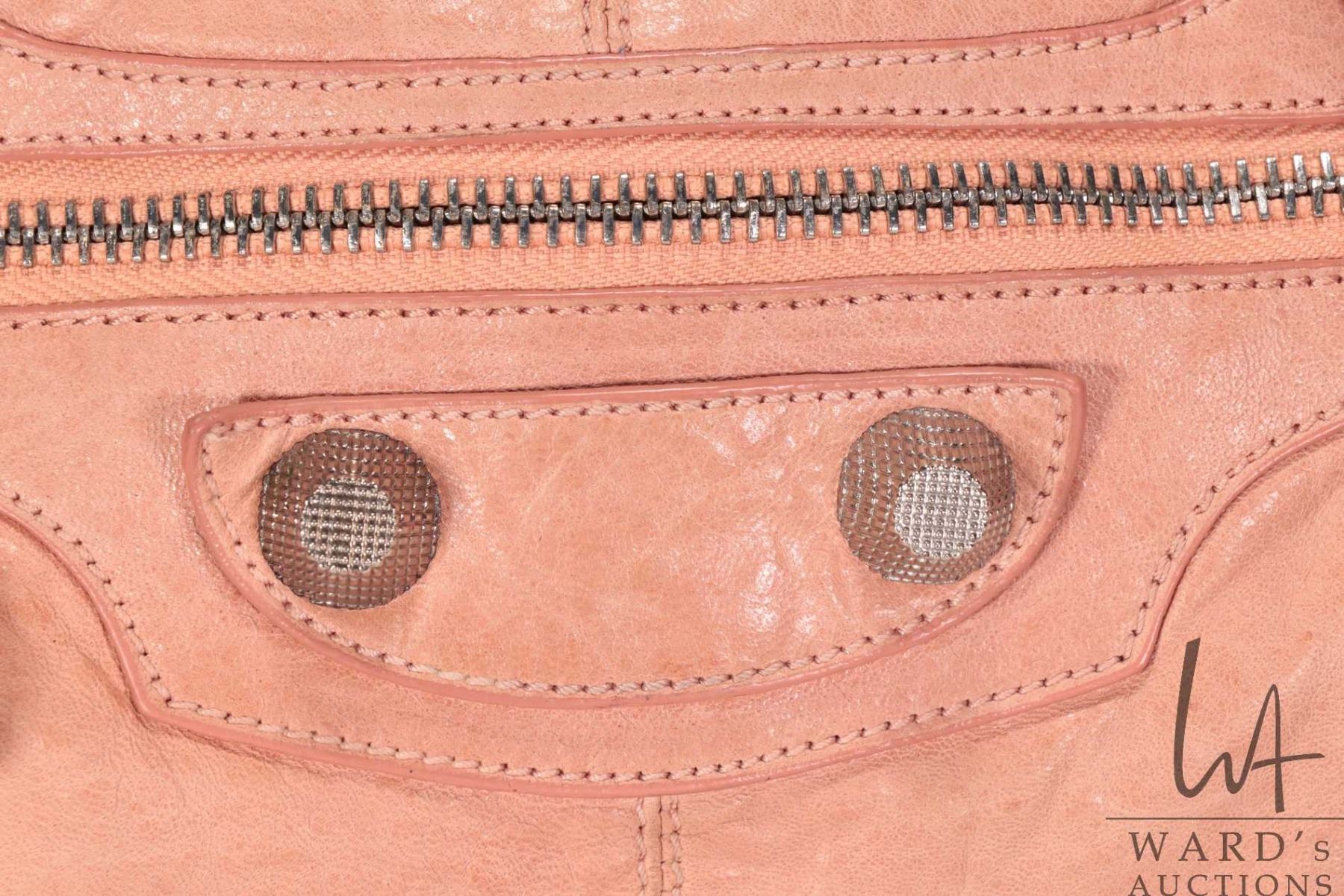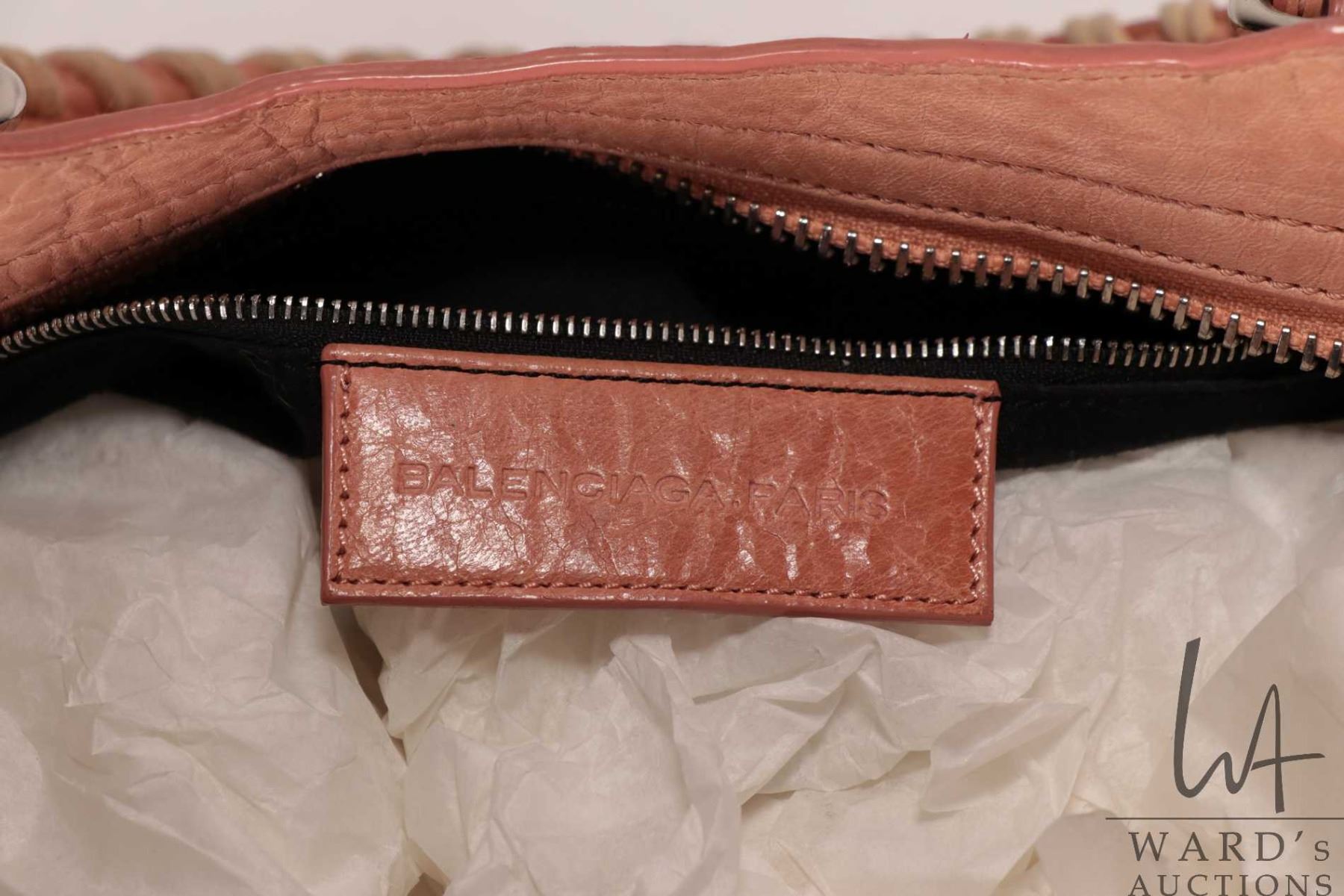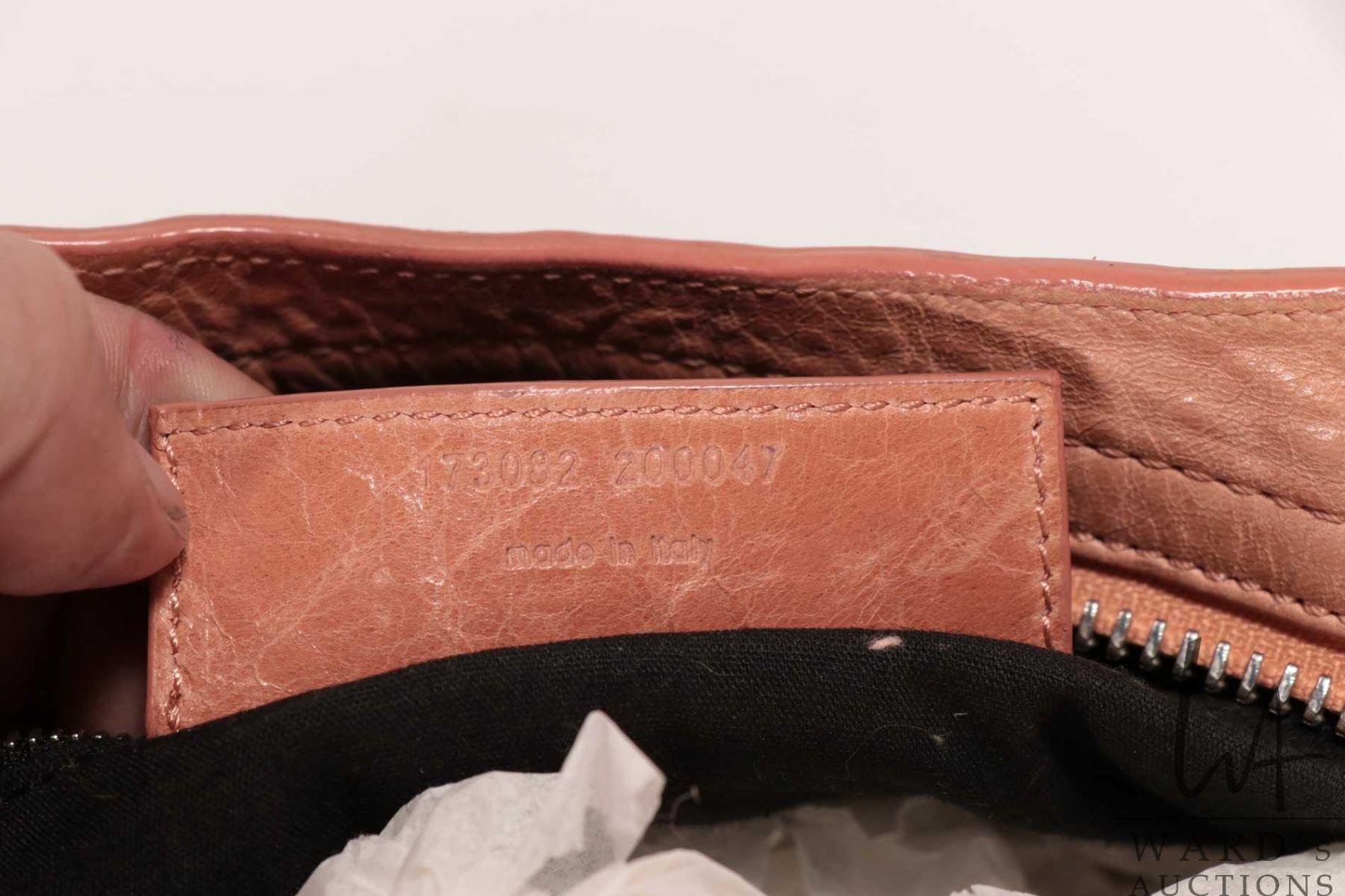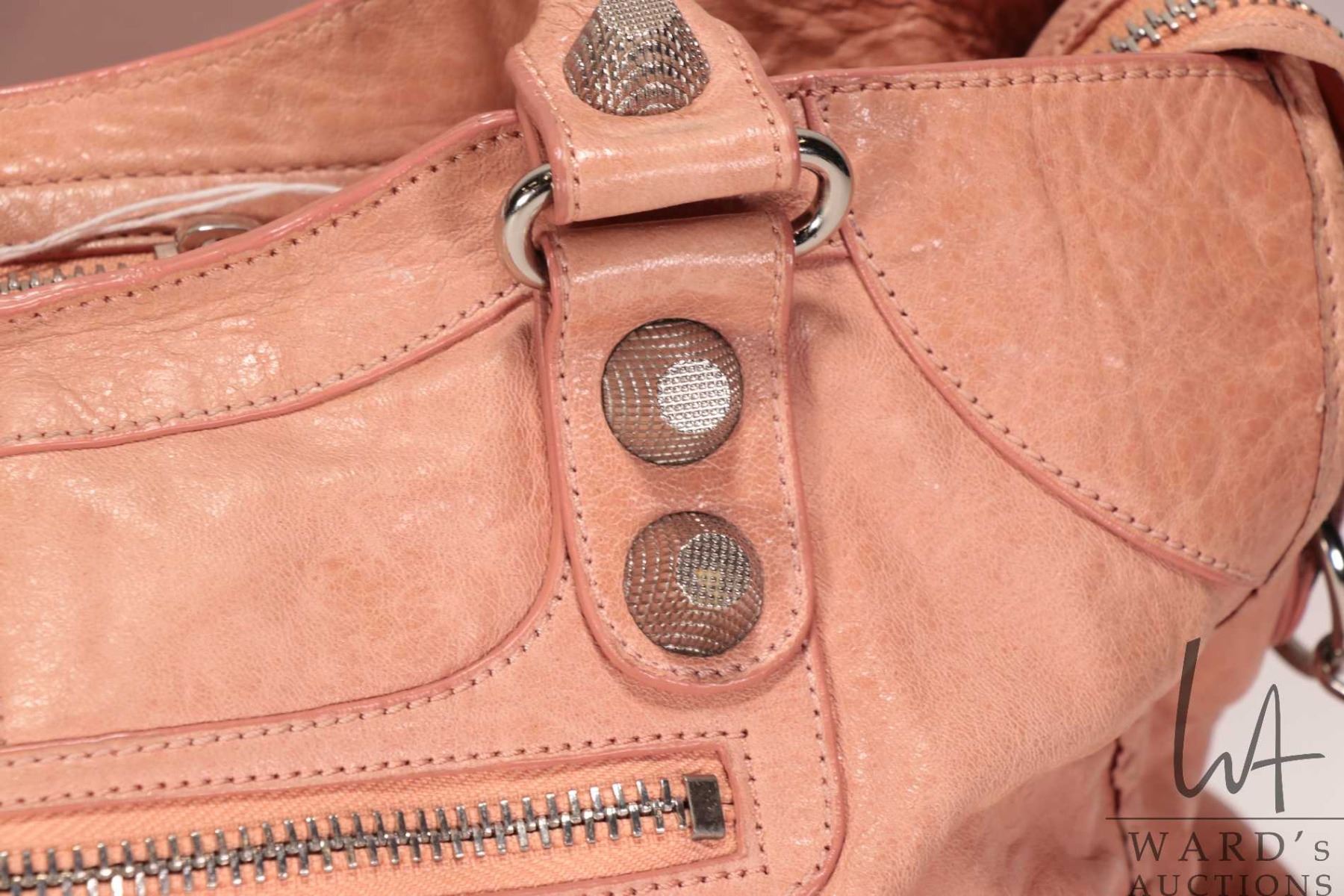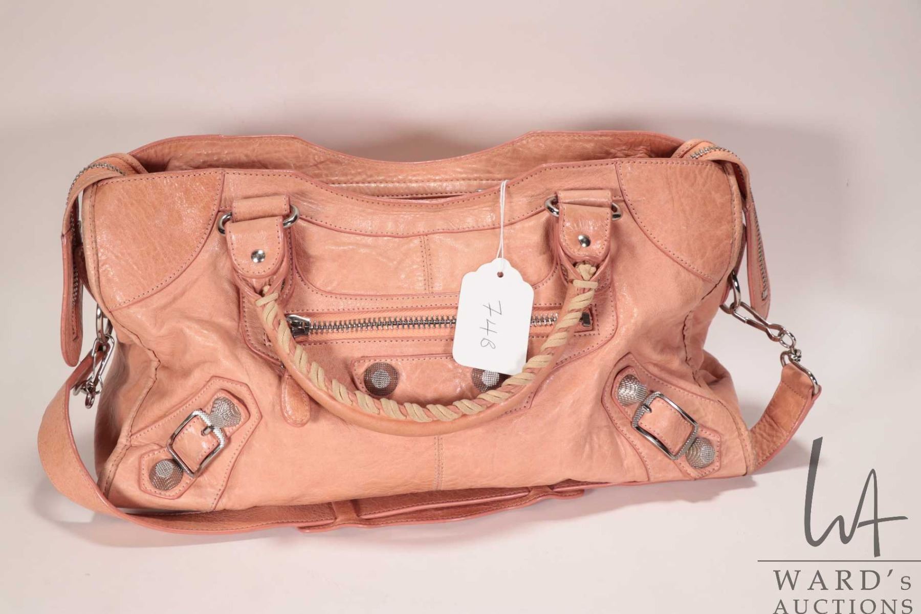 Vintage Balenciaga City Bag pink leather purse ( note: missing one top zipper pull) plus a Moschino bag dust cover Note: Buyer must satisfy themselves as to authenticity. Feel free to contact auction house regarding images that you require that may have been overlooked during original cataloguing and photography