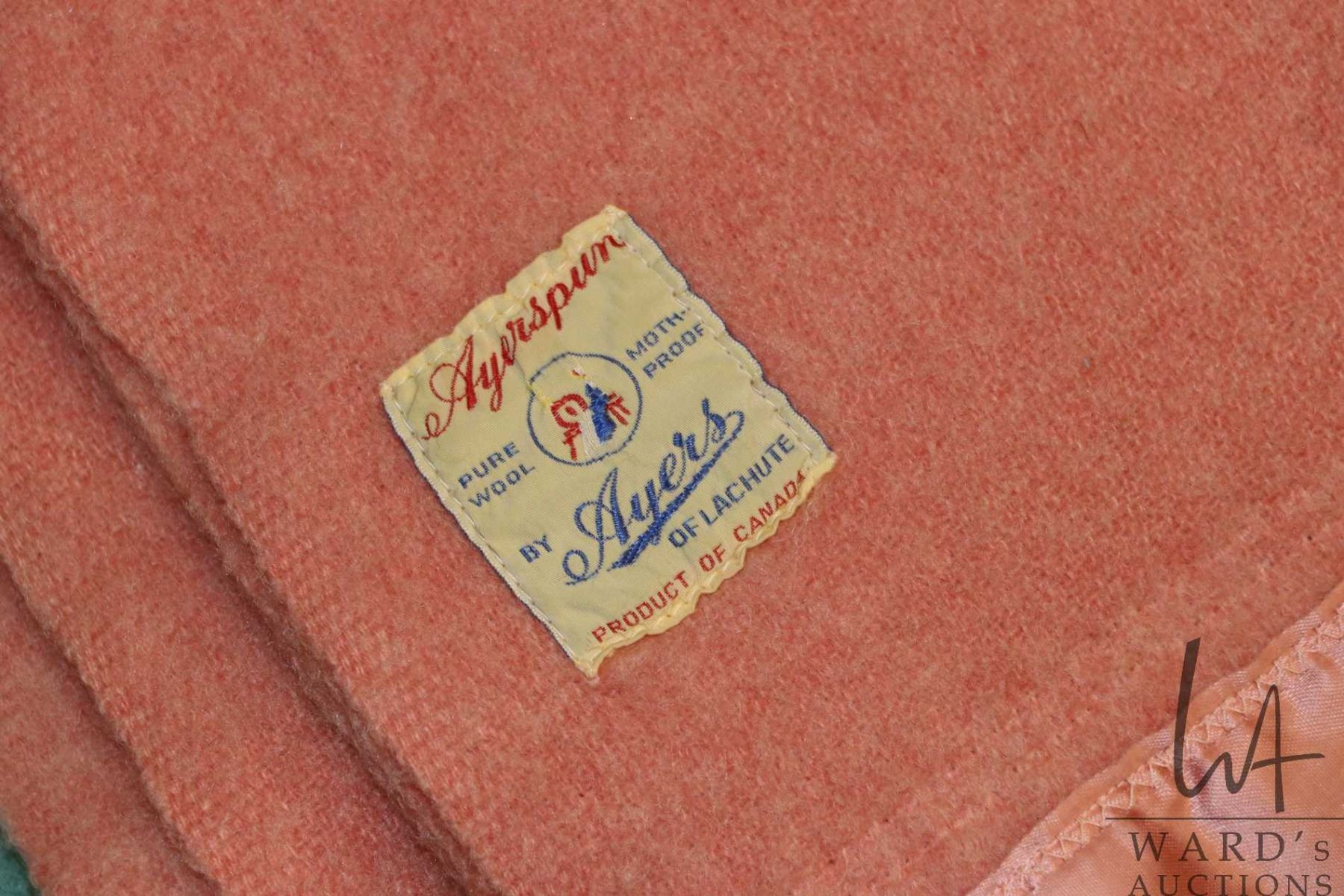 Lot 75 Three wool blankets including pink 83" X 63", green 19" X 71" and plaid 86" x 71"