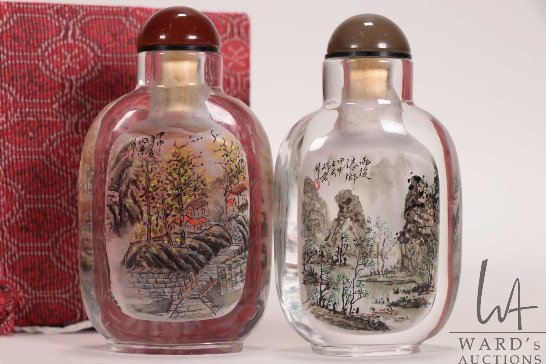 Lot 87 Two reverse inside painted "Mystic China Mountain Scene" snuff bottles