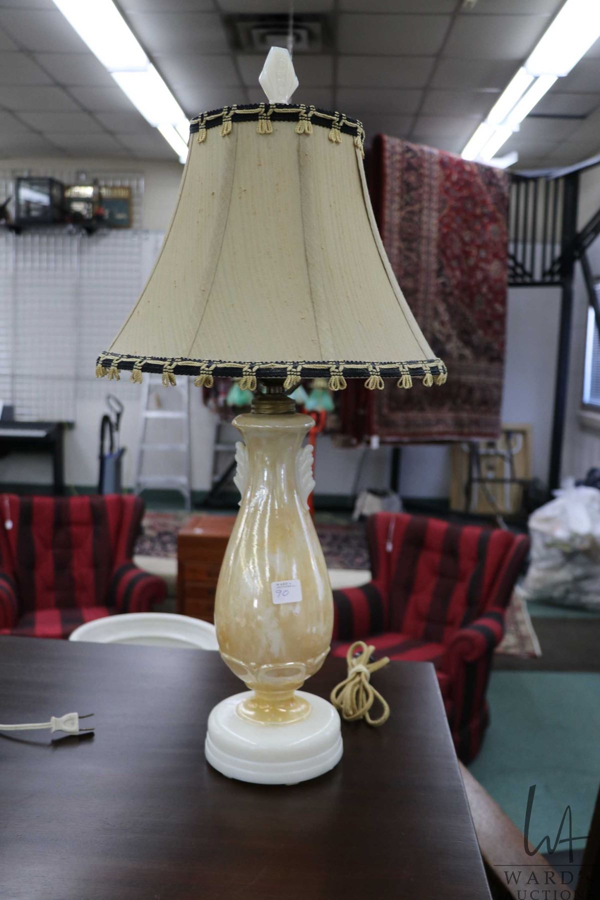 Lot 90 Vintage Alacite luster table lamp with shade, note: original finial, 25" in height