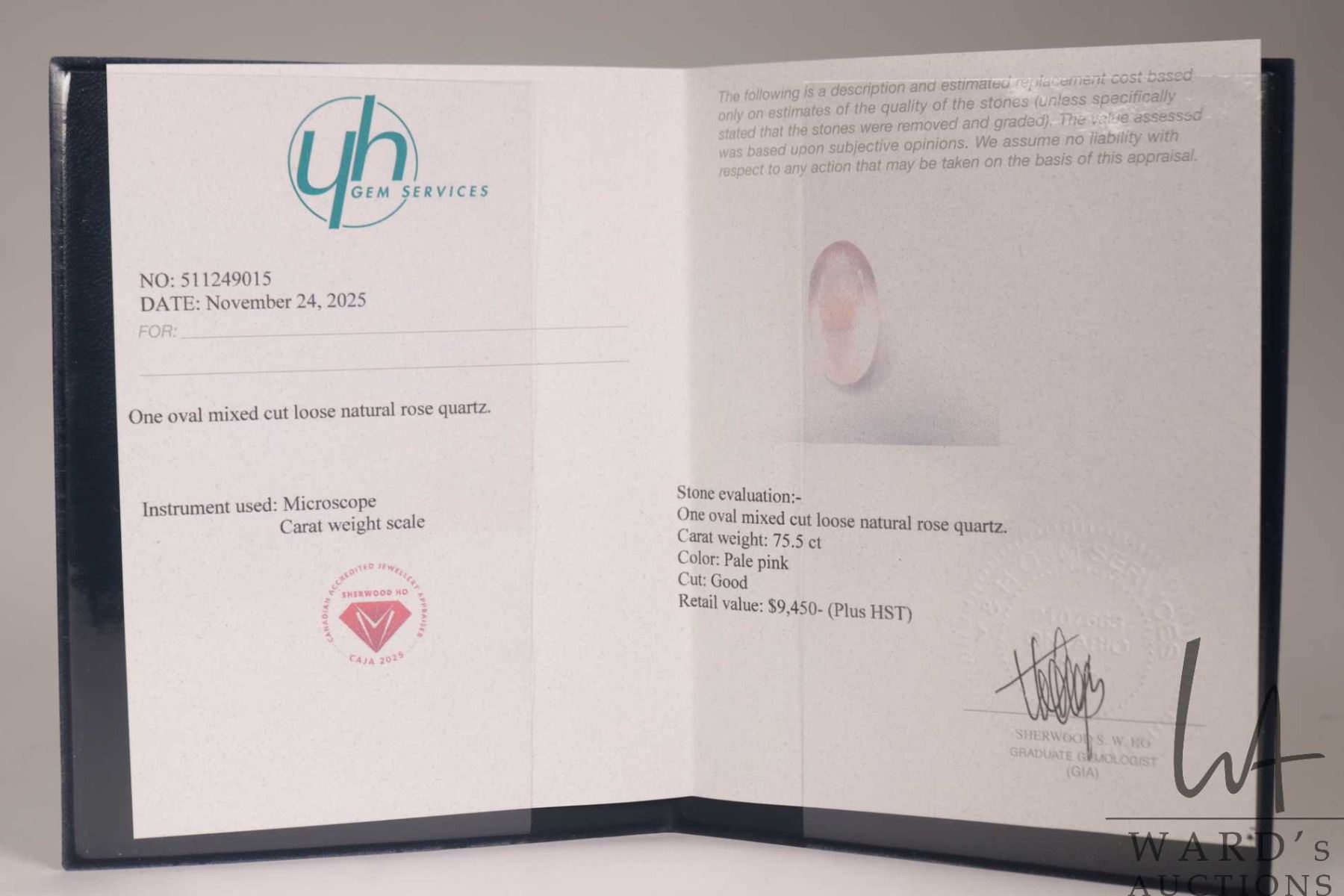 Lot 96 75.5ct oval natural rose quartz gemstone with certificate provided by consignor