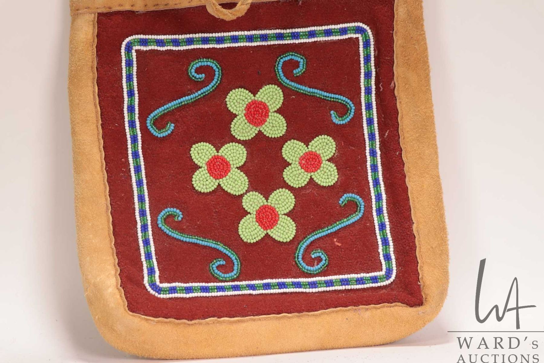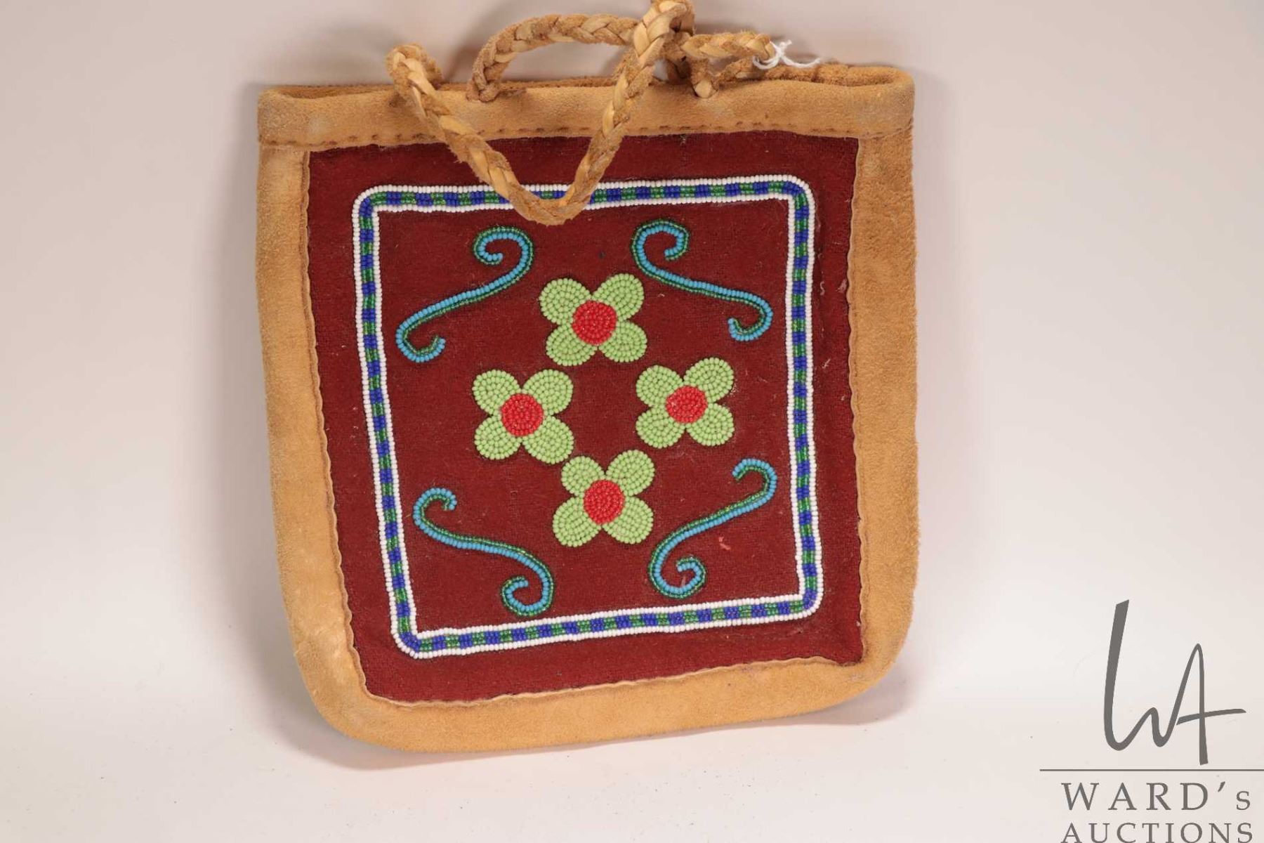 Lot 104 Canadian Indigenous purse with fringed edge, cotton lining and beaded decoration