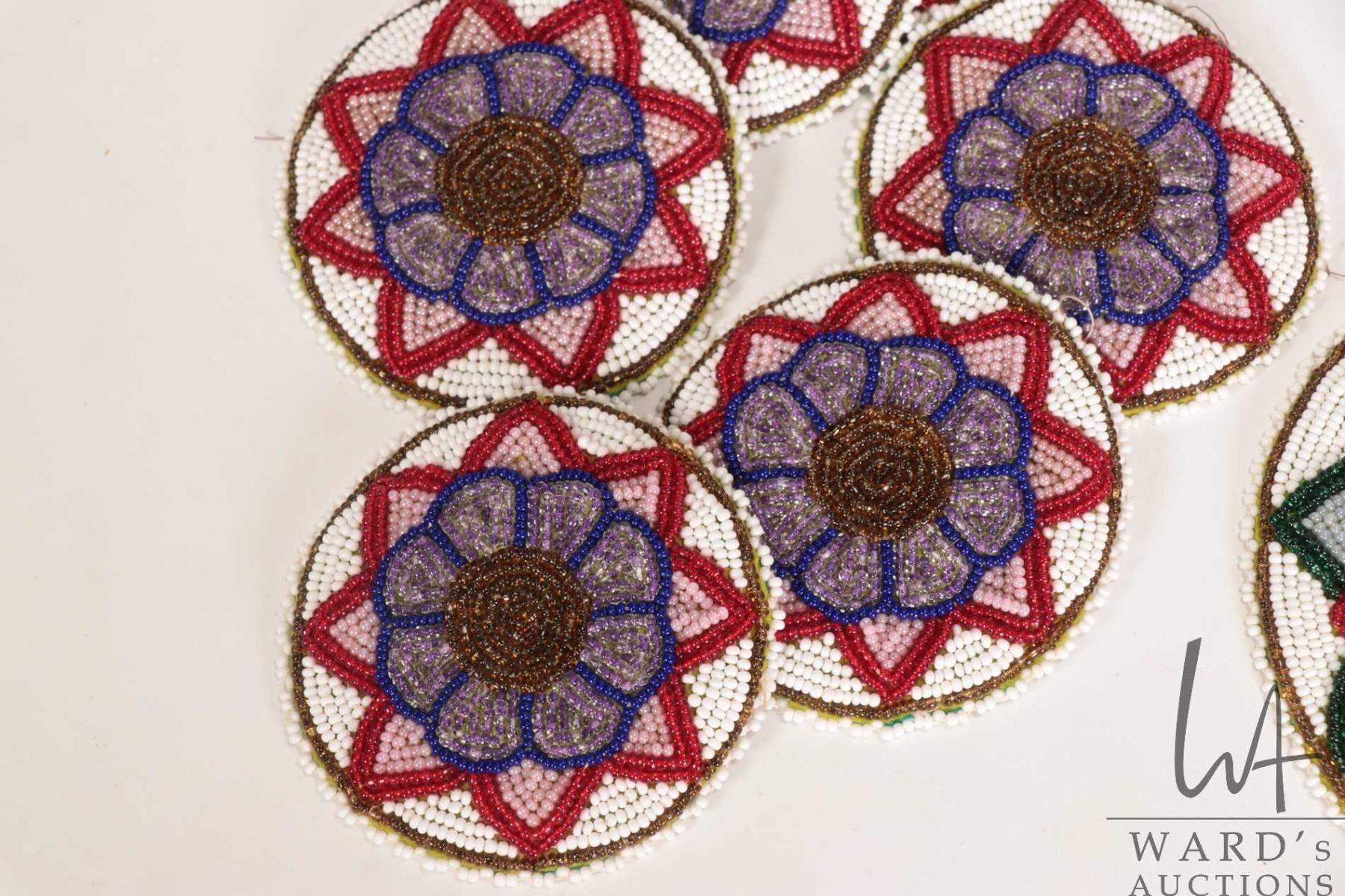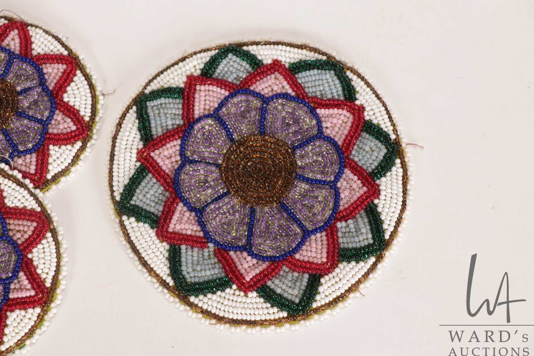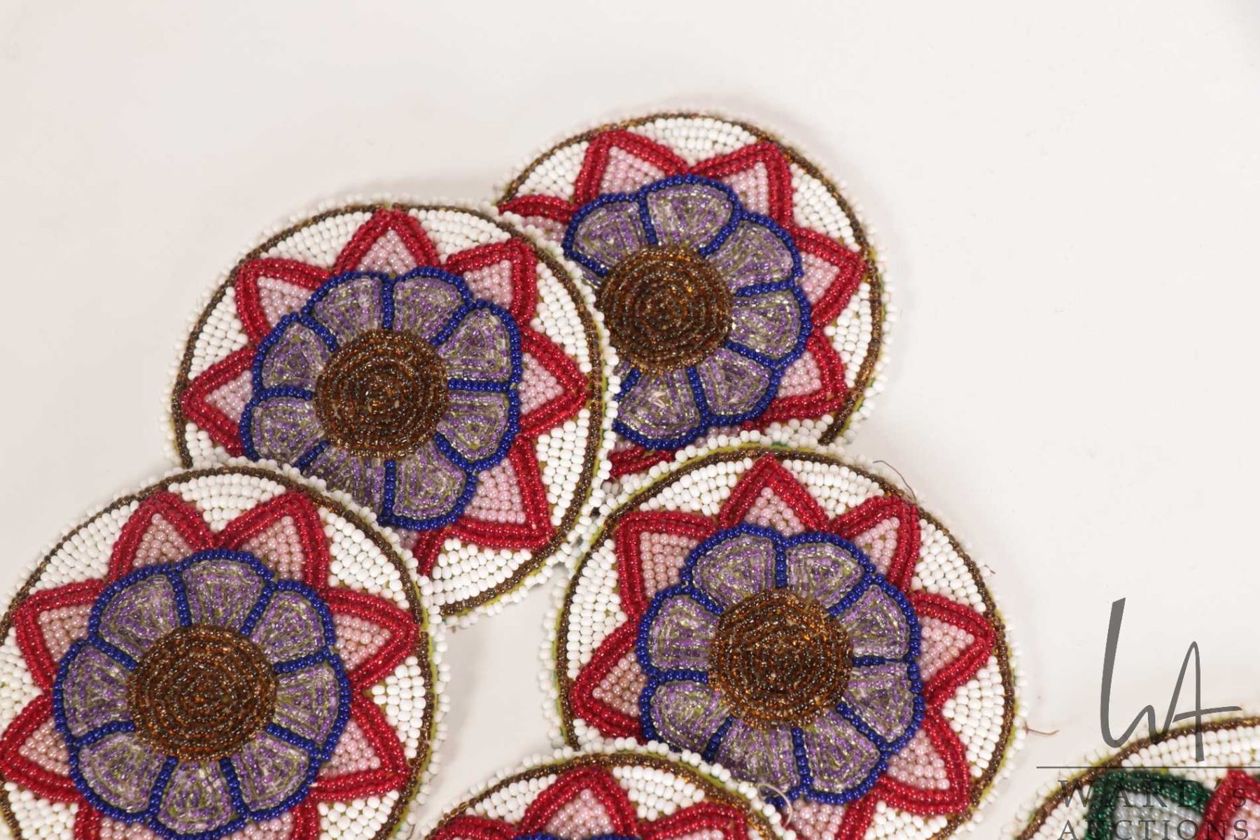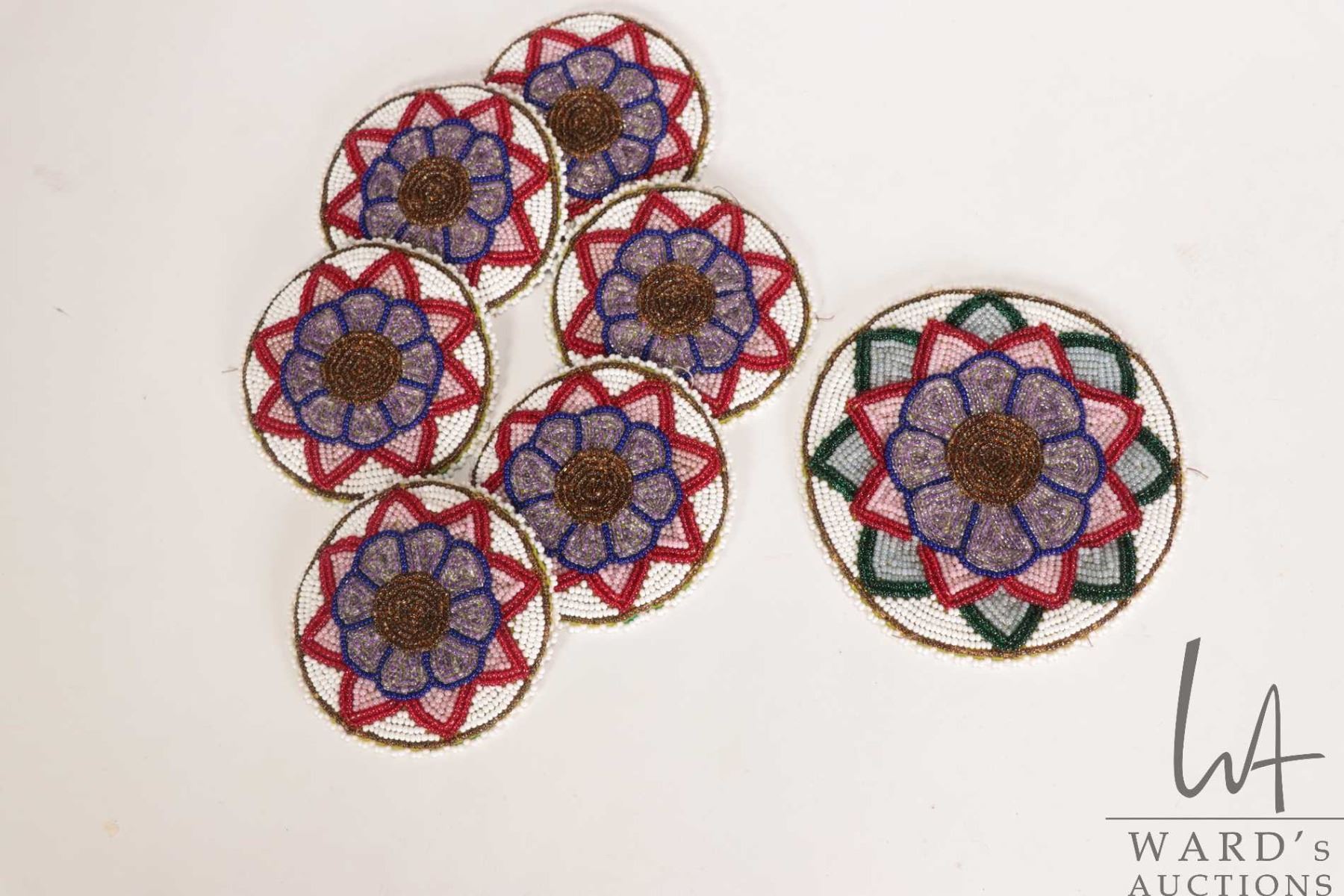 Lot 107 Seven Indigenous beaded mats including six 3 1/2" and a 4 3/4"