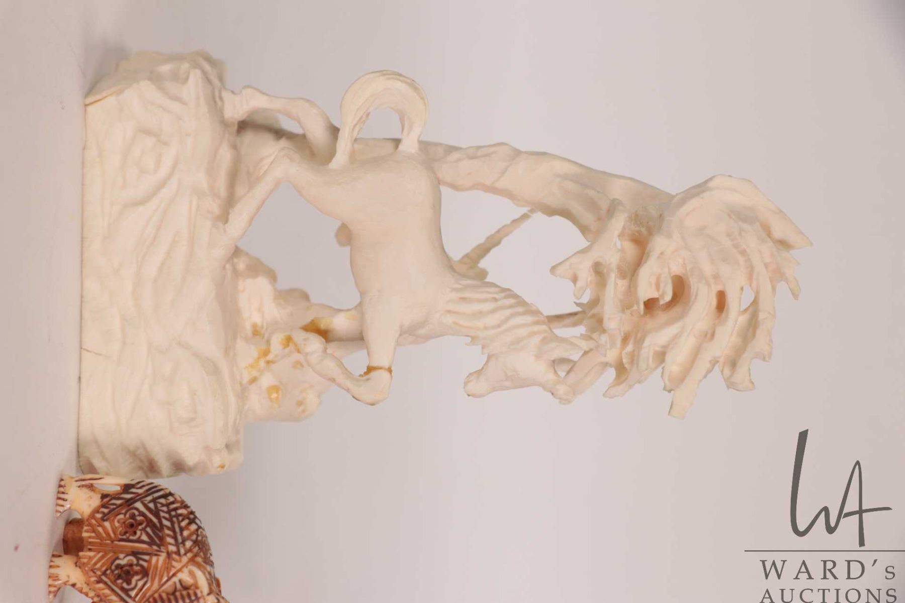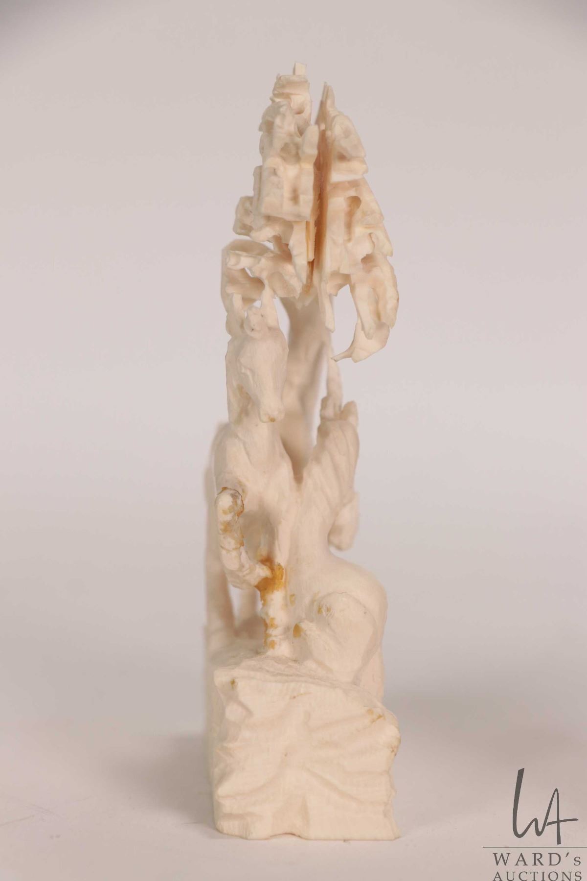 Lot 111 Three small carvings including ivory unicorn figures, note: has been glued 4" in height and a 1" ele