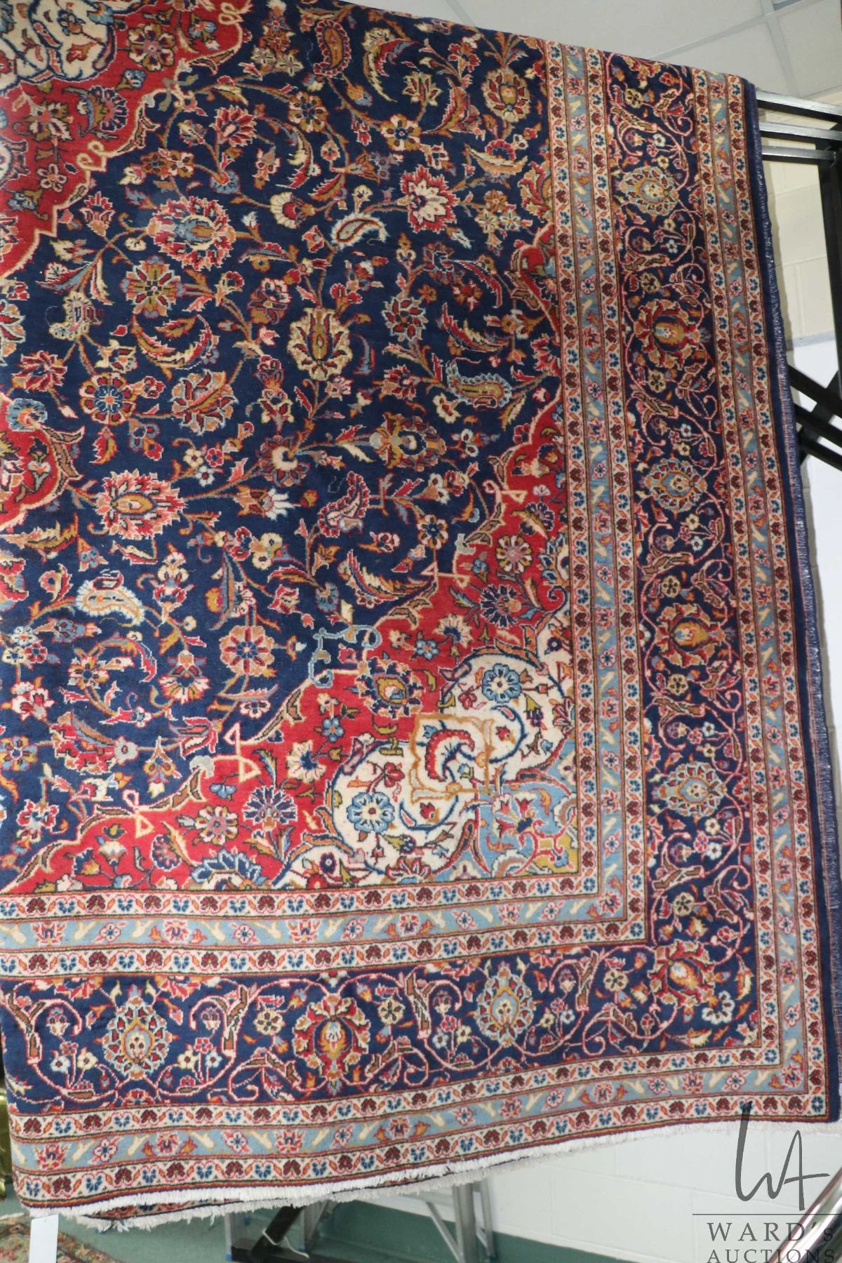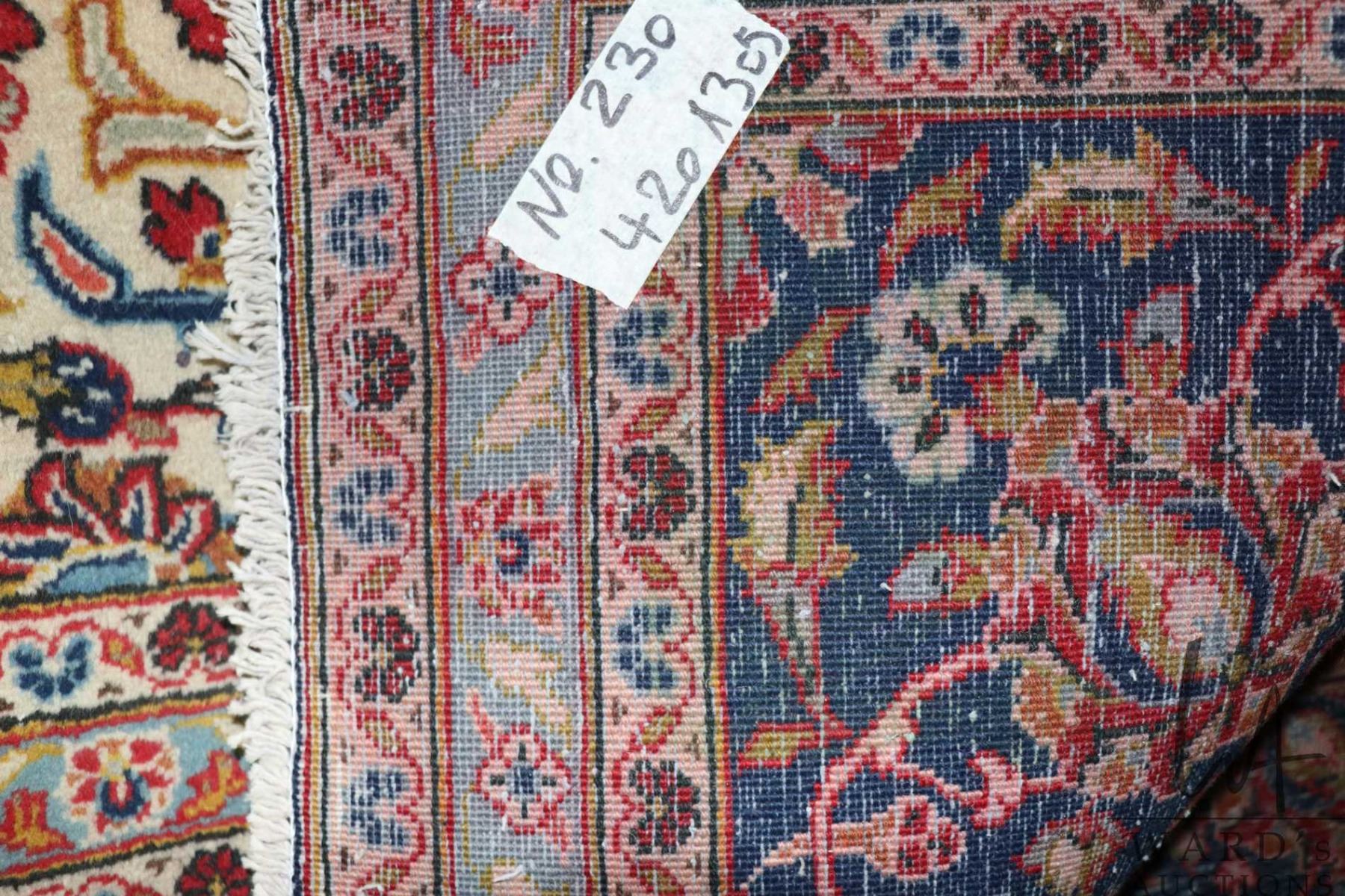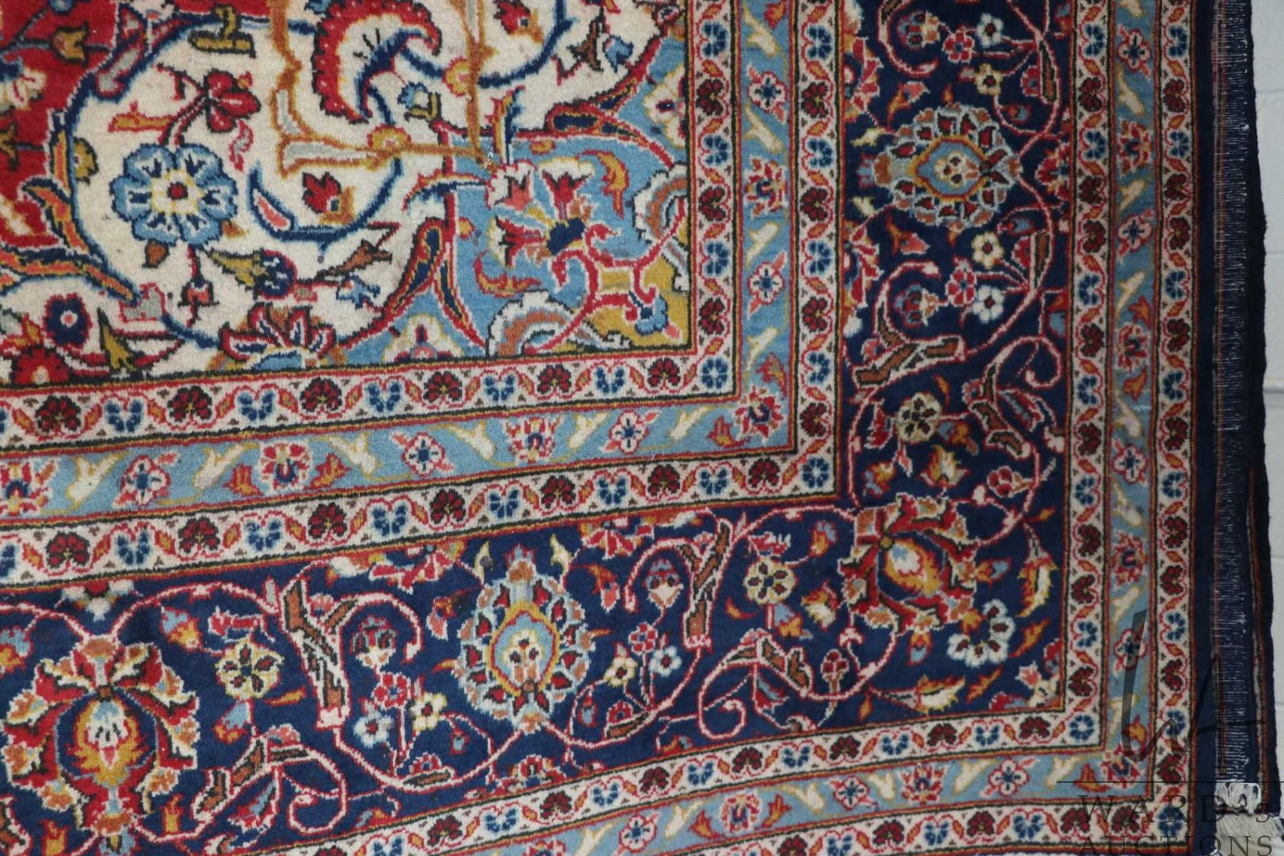 Lot 119 Iranian wool carpet "Kashan' with center medallion on blue background with overall floral design and