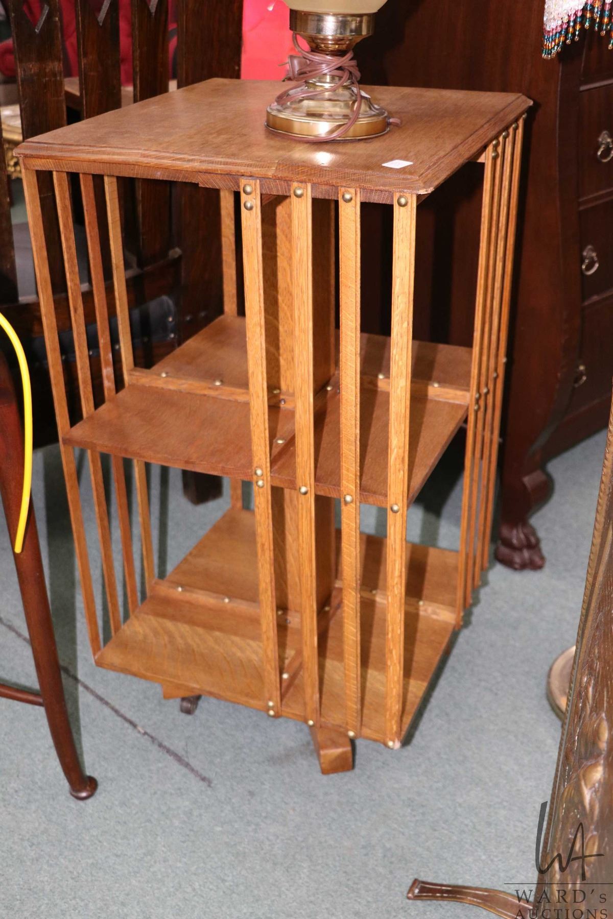Lot 125 Antique quarter cut oak, rotating Mission style bookcase, 33" H X 18" W