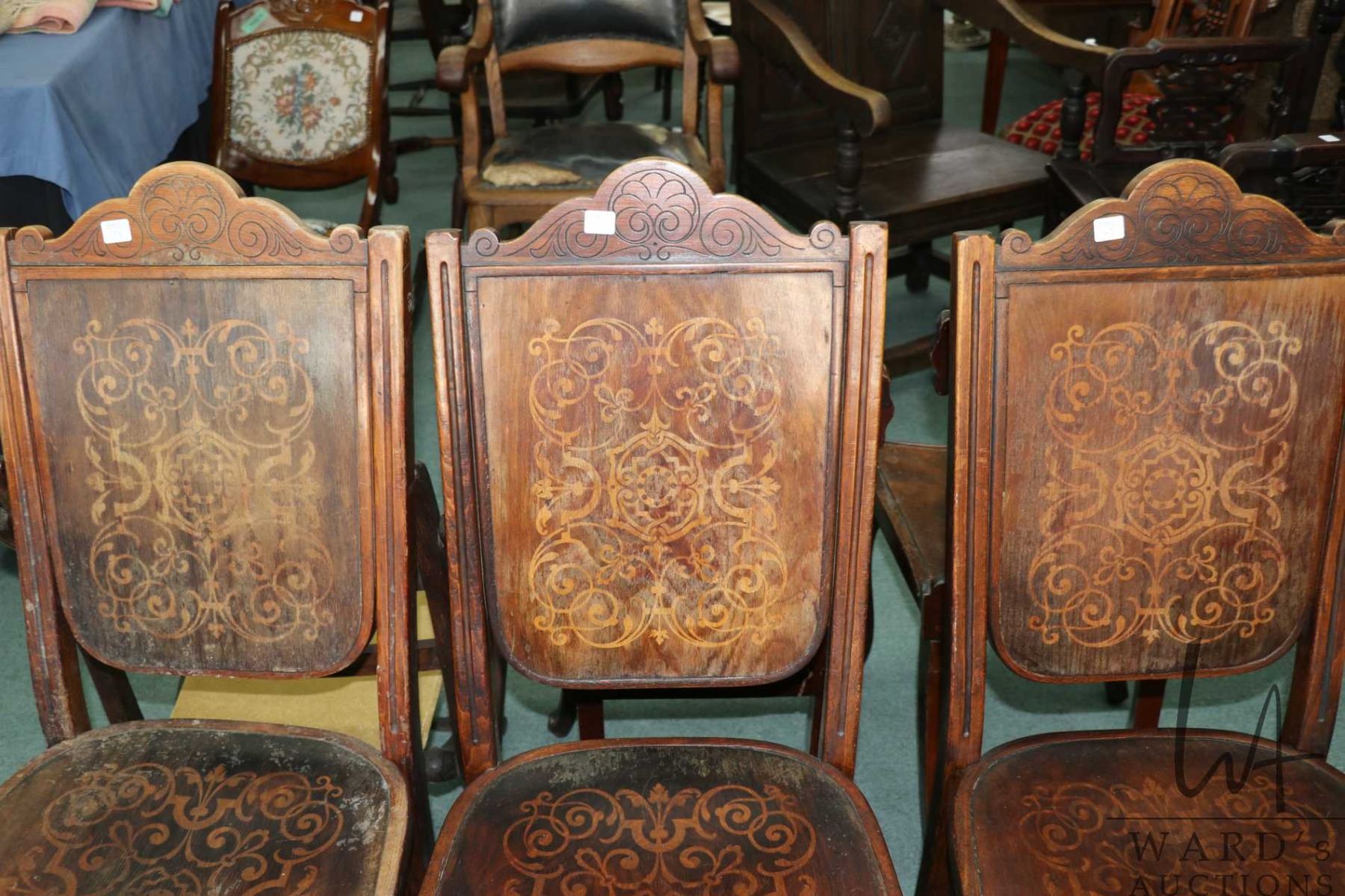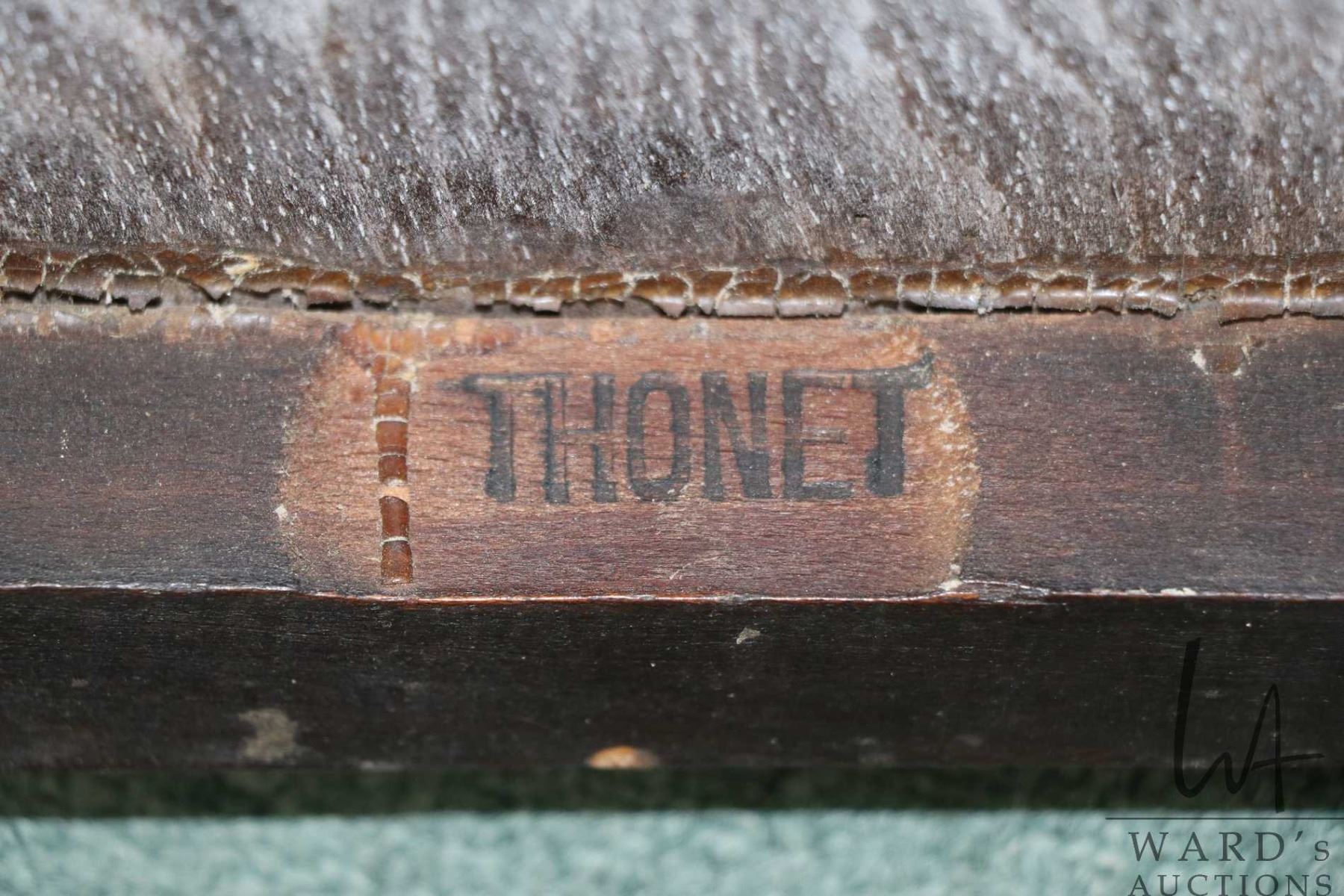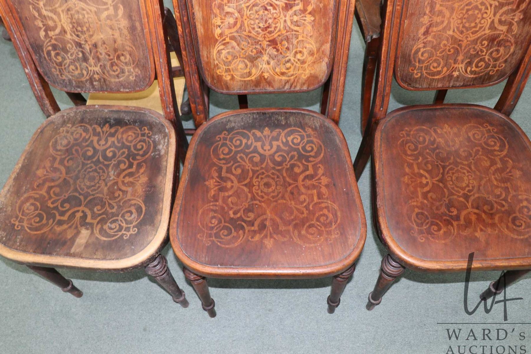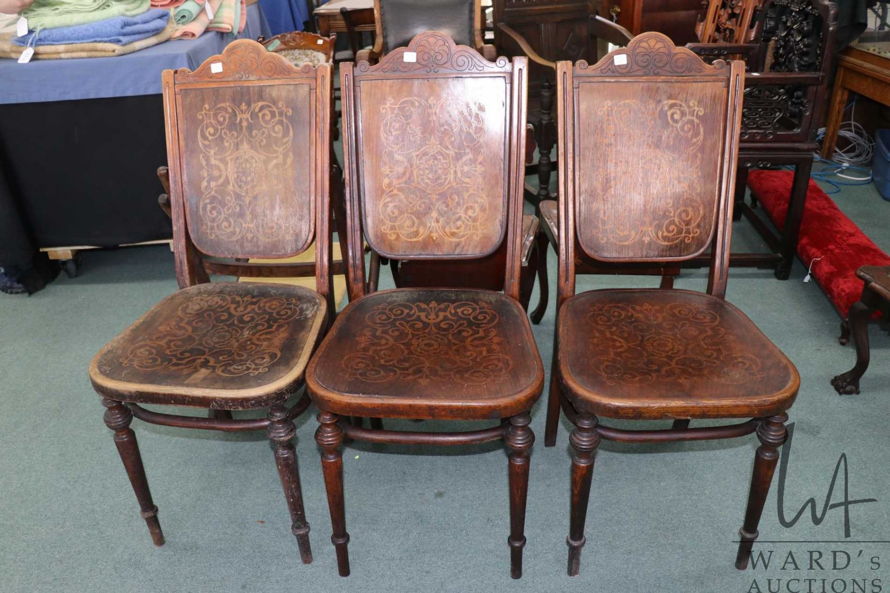 Lot 129 Three antique Thonet bent wood dining chairs with printed seats and backs