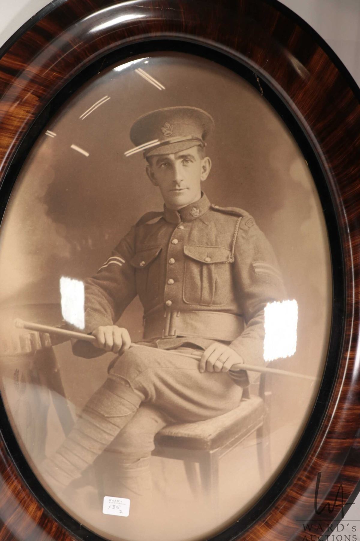 Lot 135 Two vintage framed photographs including oval convex featuring WWI soldier, overall framed dimension