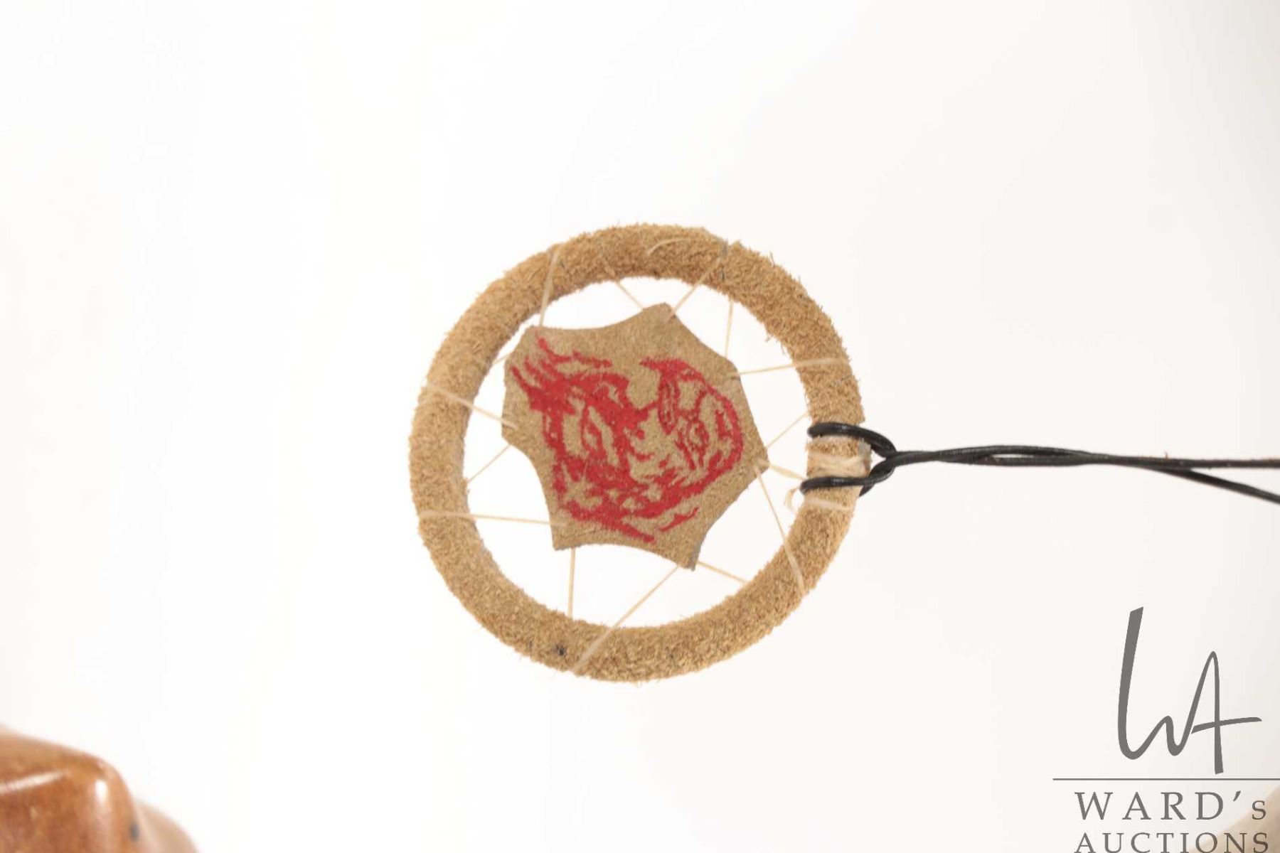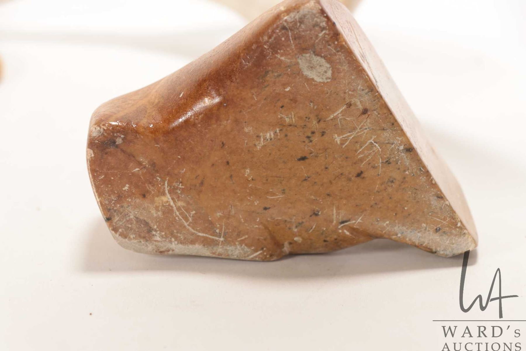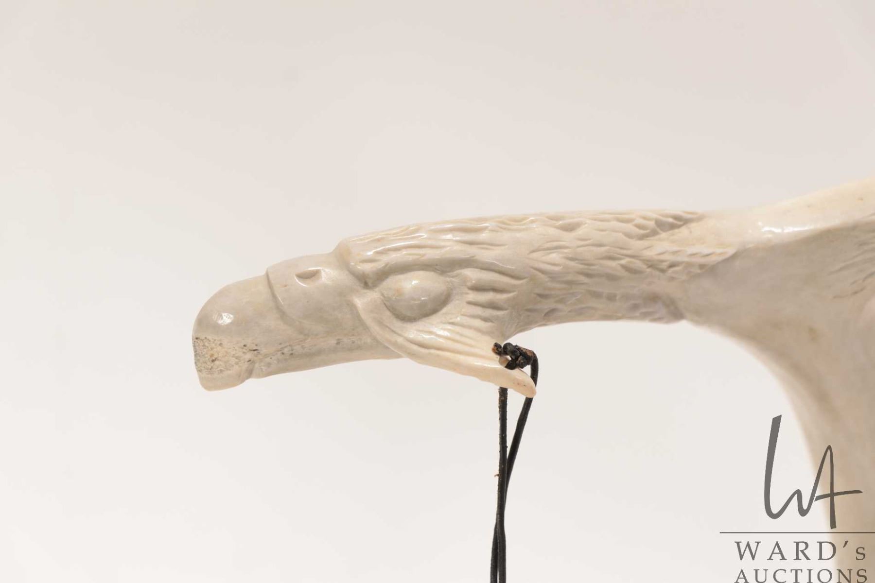 Lot 139 Indigenous hand carved antler eagle on stone base, signed by artist and 9 3/4" in height