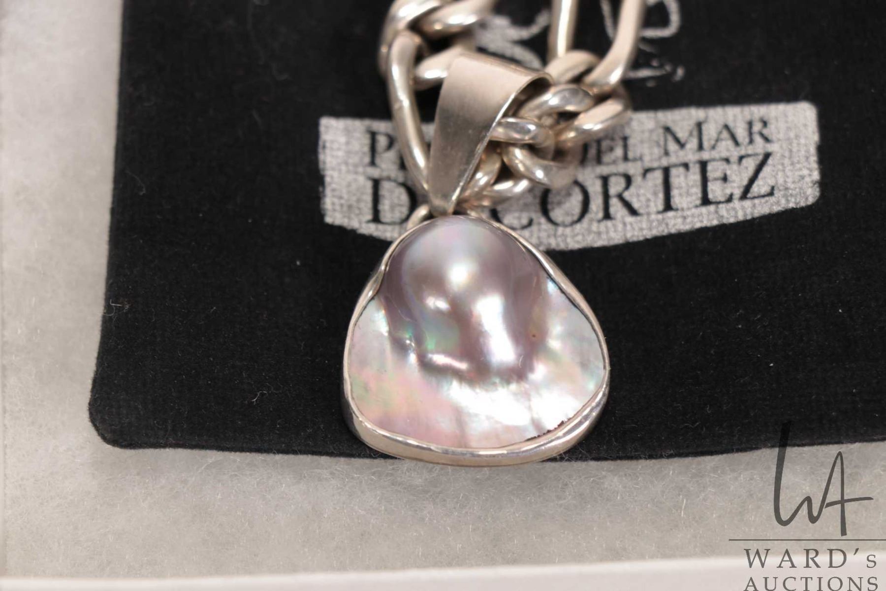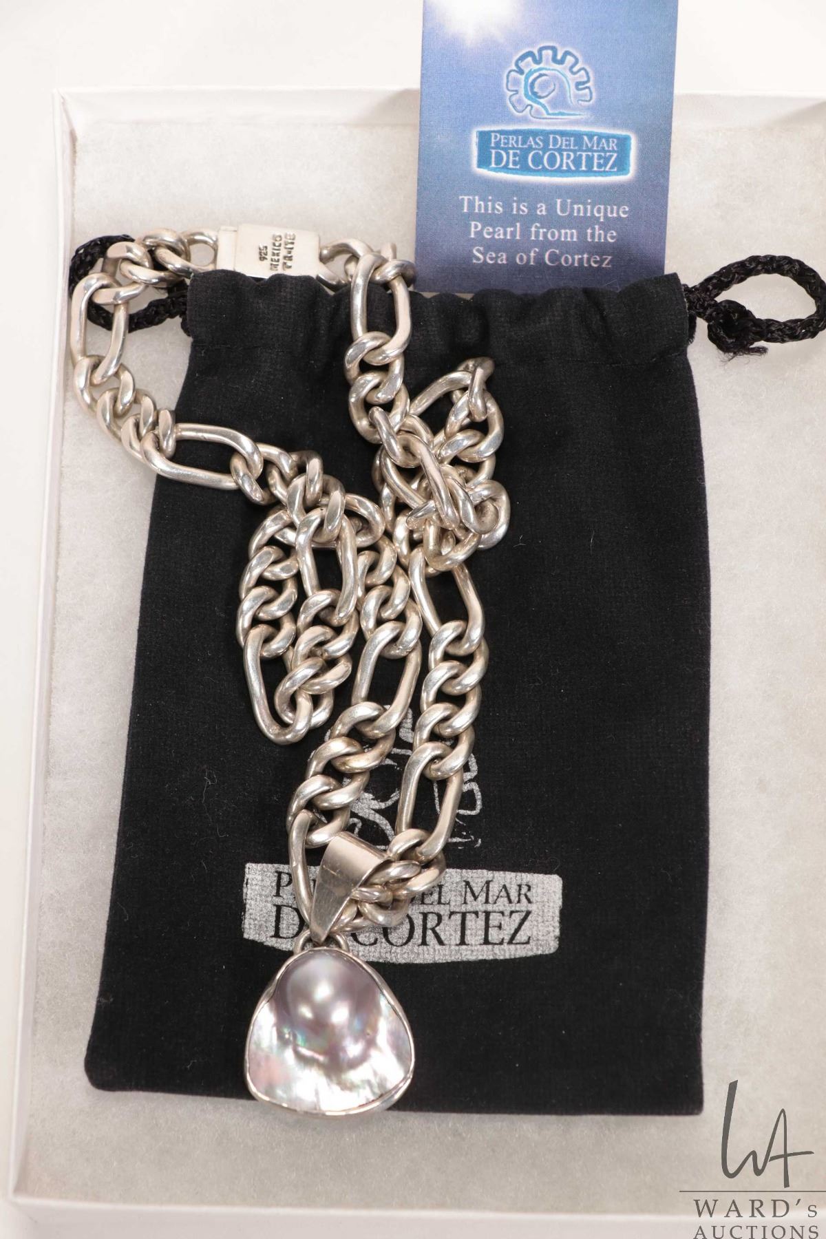 Lot 143 Sea of Cortez pearl pendant in unmarked silver holder and a heavy 20" silver necklace marked 925 Mex