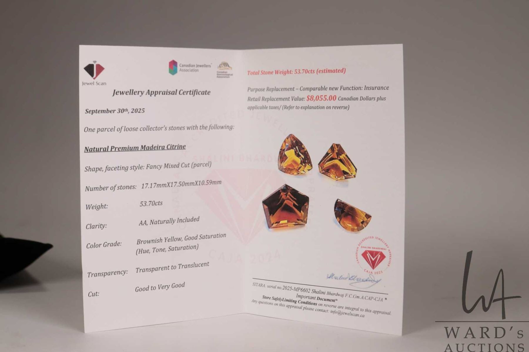 Lot 145 Parcel of 53.70 cts of Madeira citrine gemstones with certificate provided by consignor