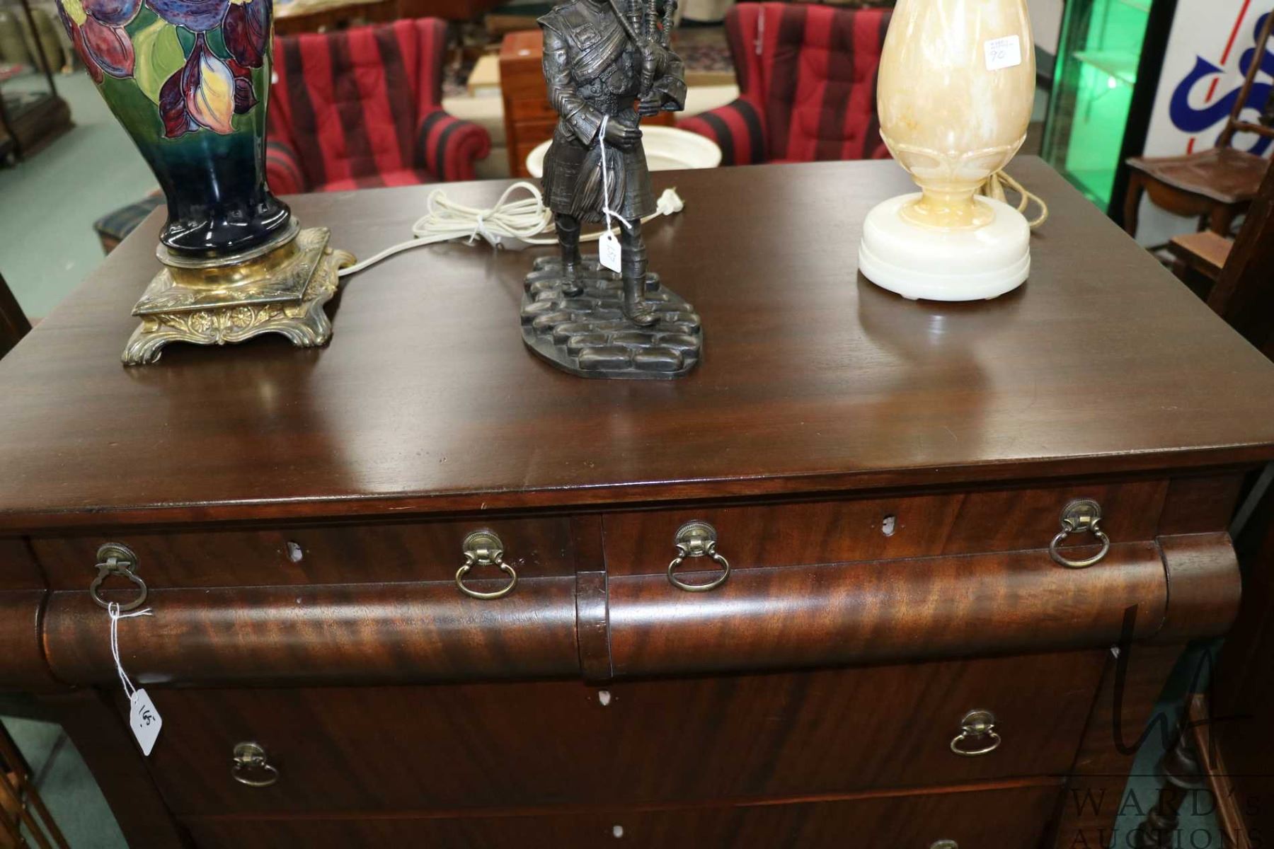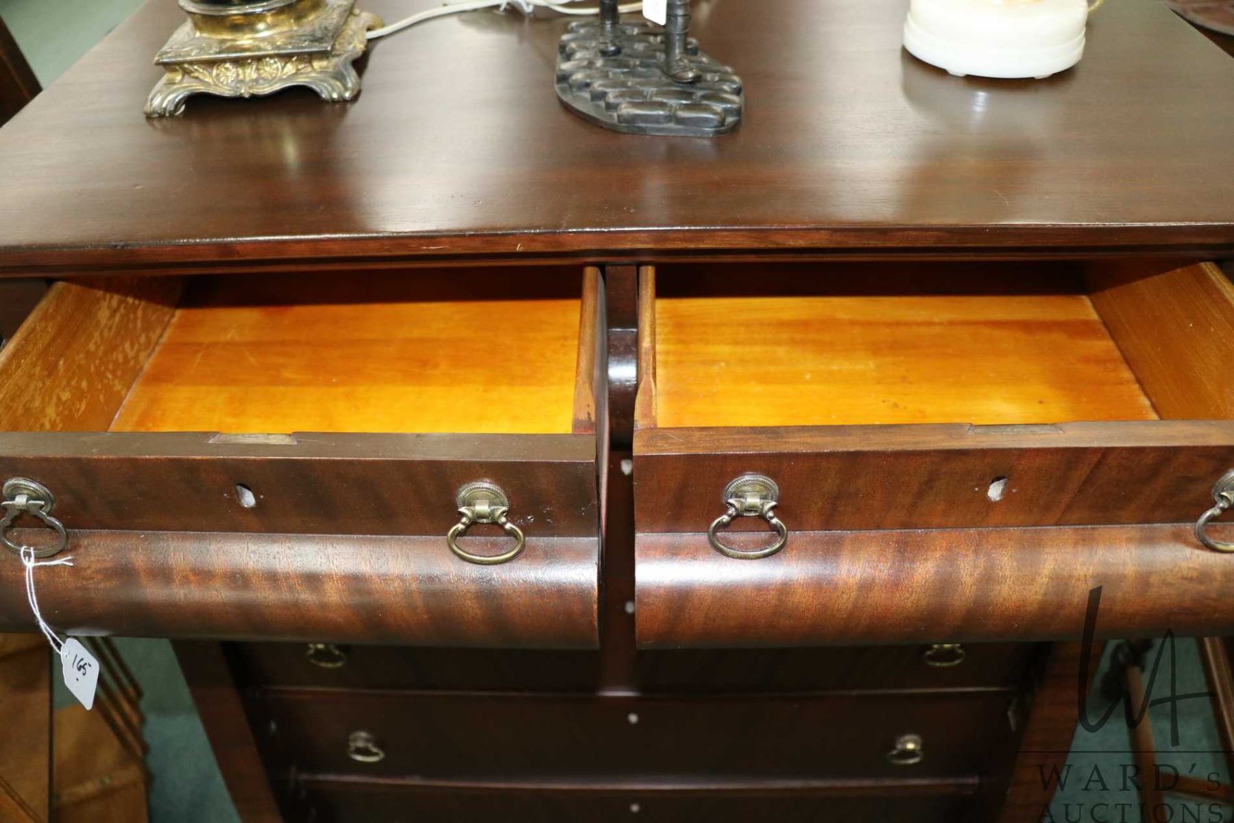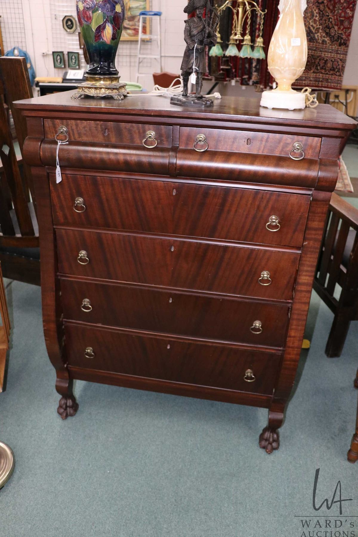 Lot 165 Antique mahogany six drawer highboy with carved paw feet, 46" H X 36" W X 21" D