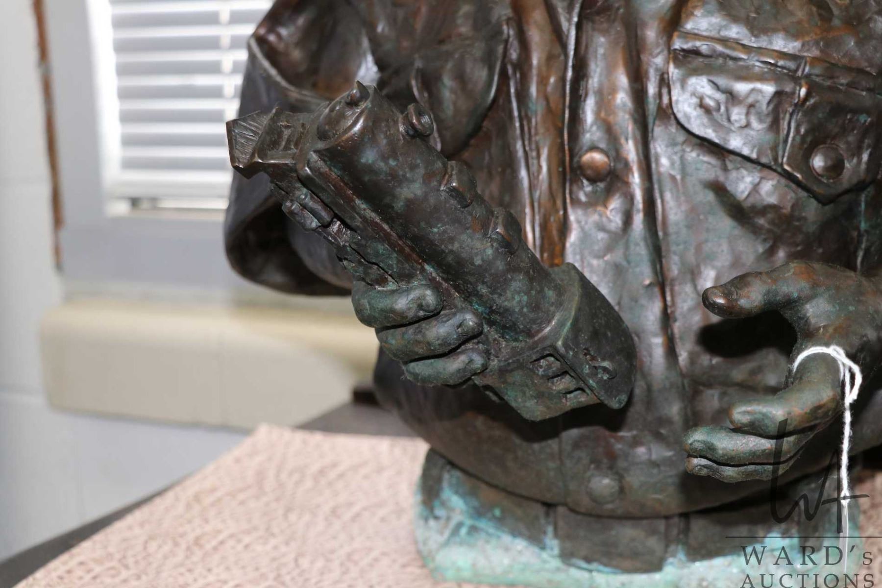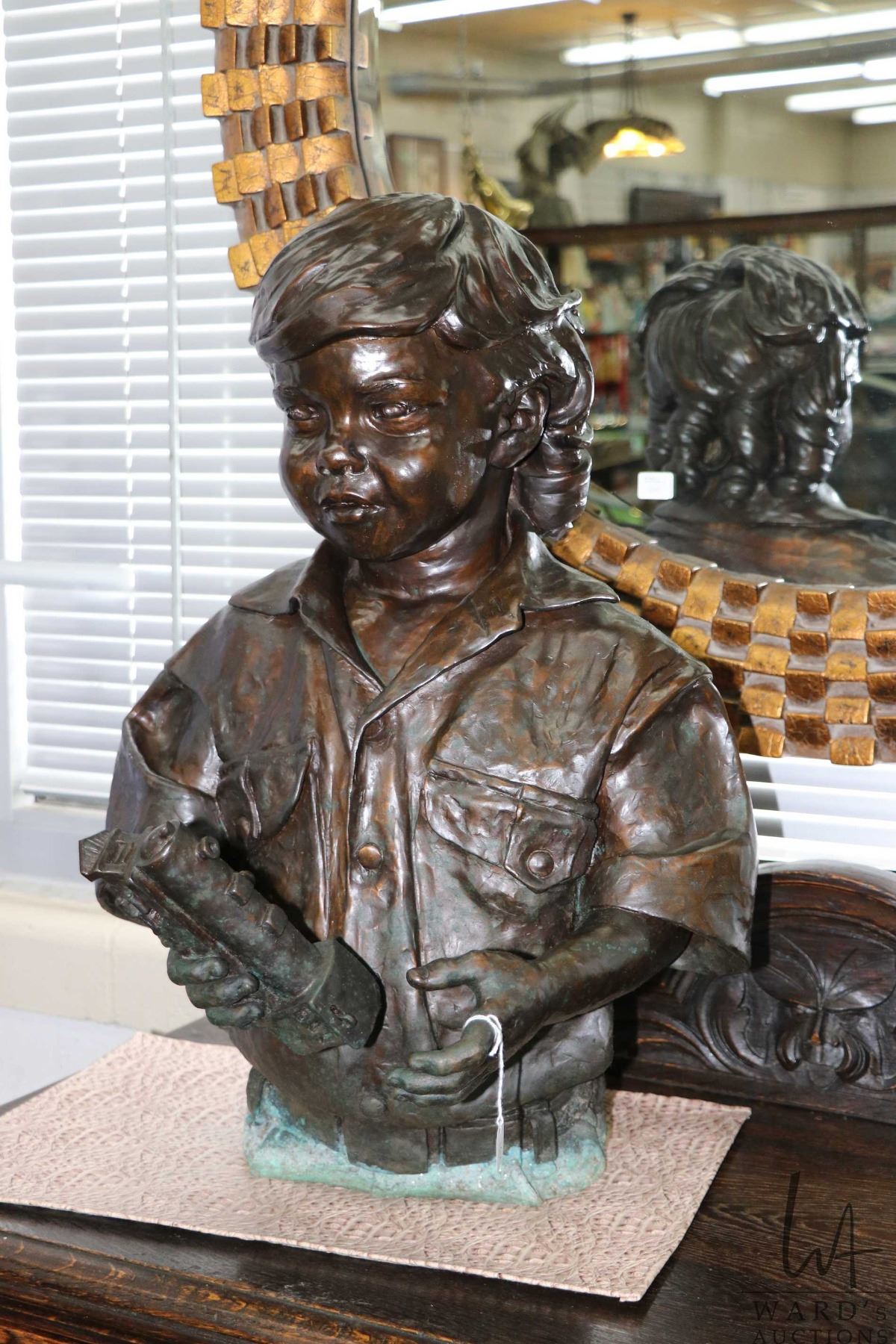 Lot 167 Bronze sculpture of a young boy with his toy train, possibly titled "Coleton Nickolas Landvand,Born