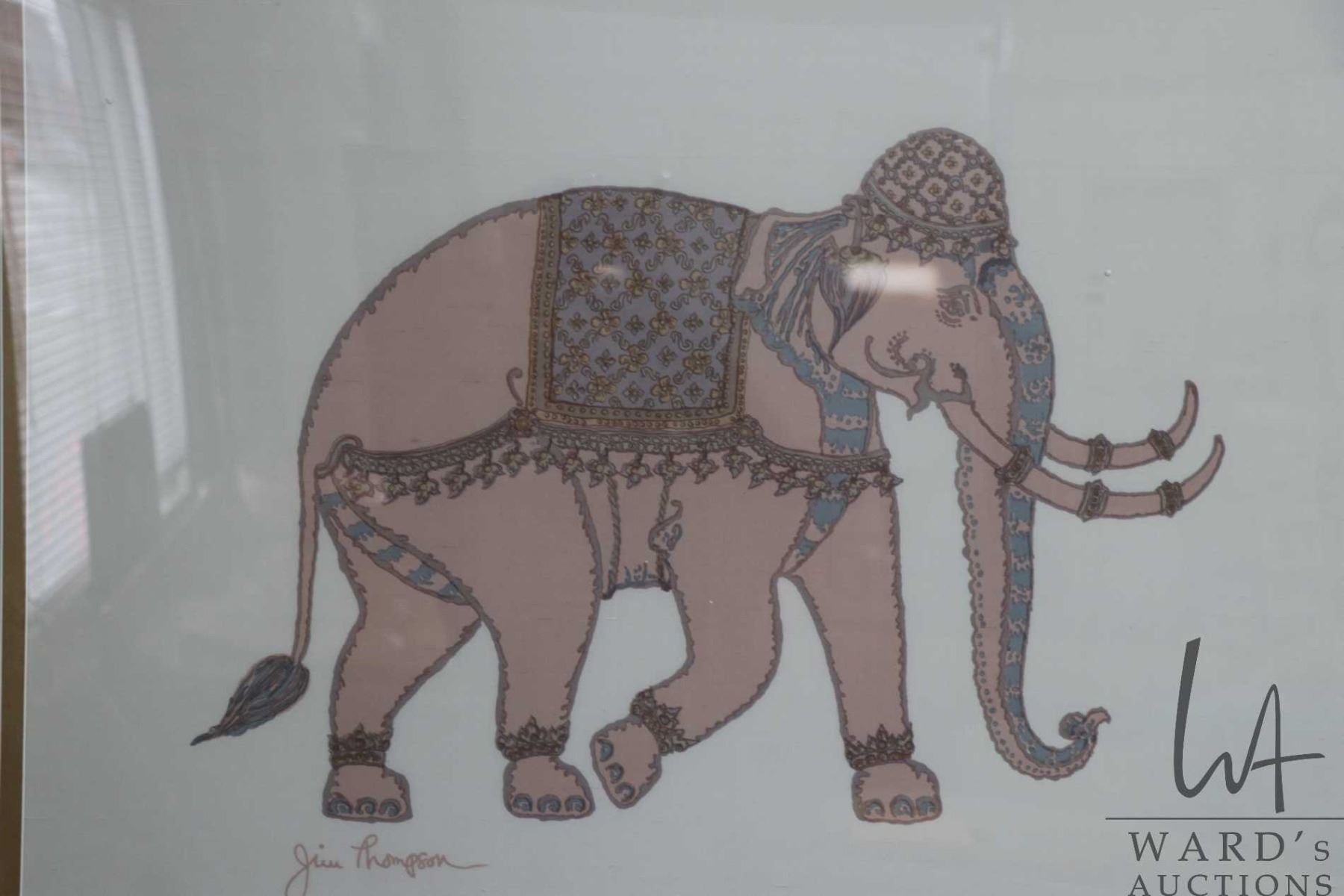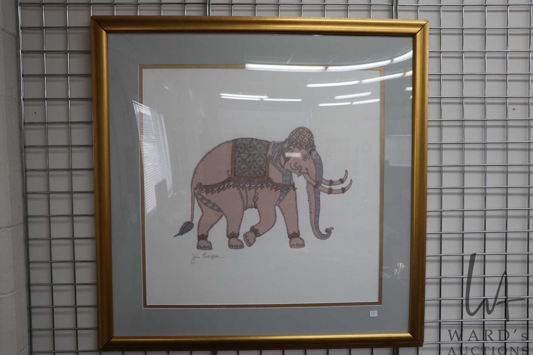 Lot 169 Gilt framed vintage Jim Thompson silk elephant scarf, overall dimensions including frame 42" x 42"