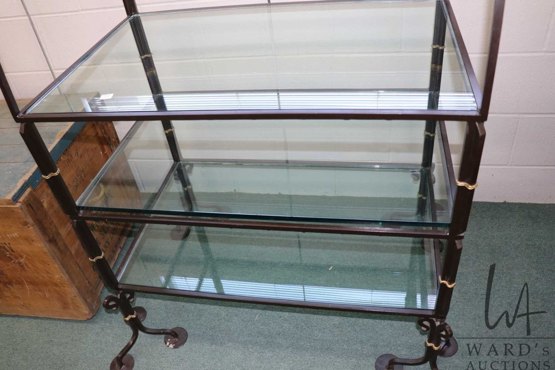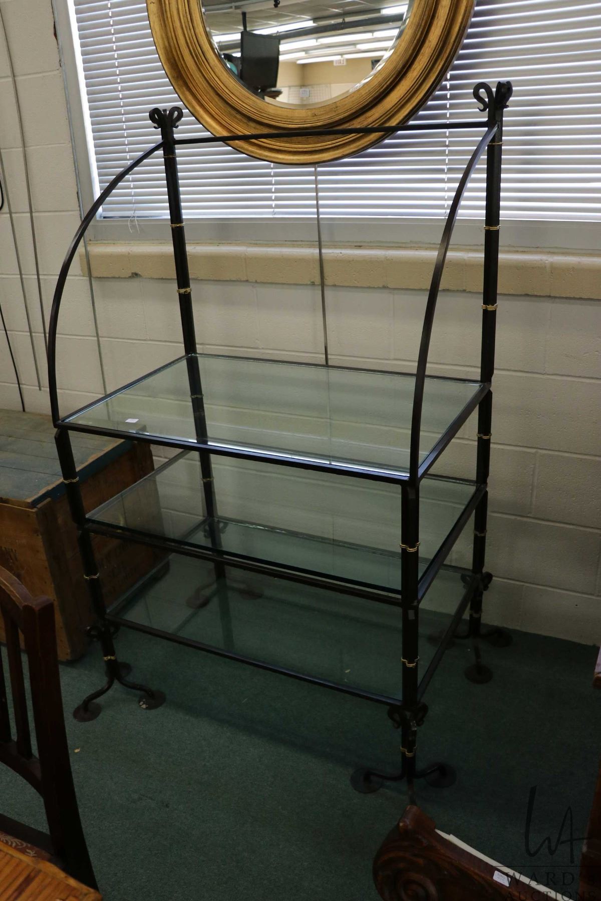 Lot 173 Quality heavy wrought iron and glass baker's rack style stand, 58" H X 37" W X 25" D