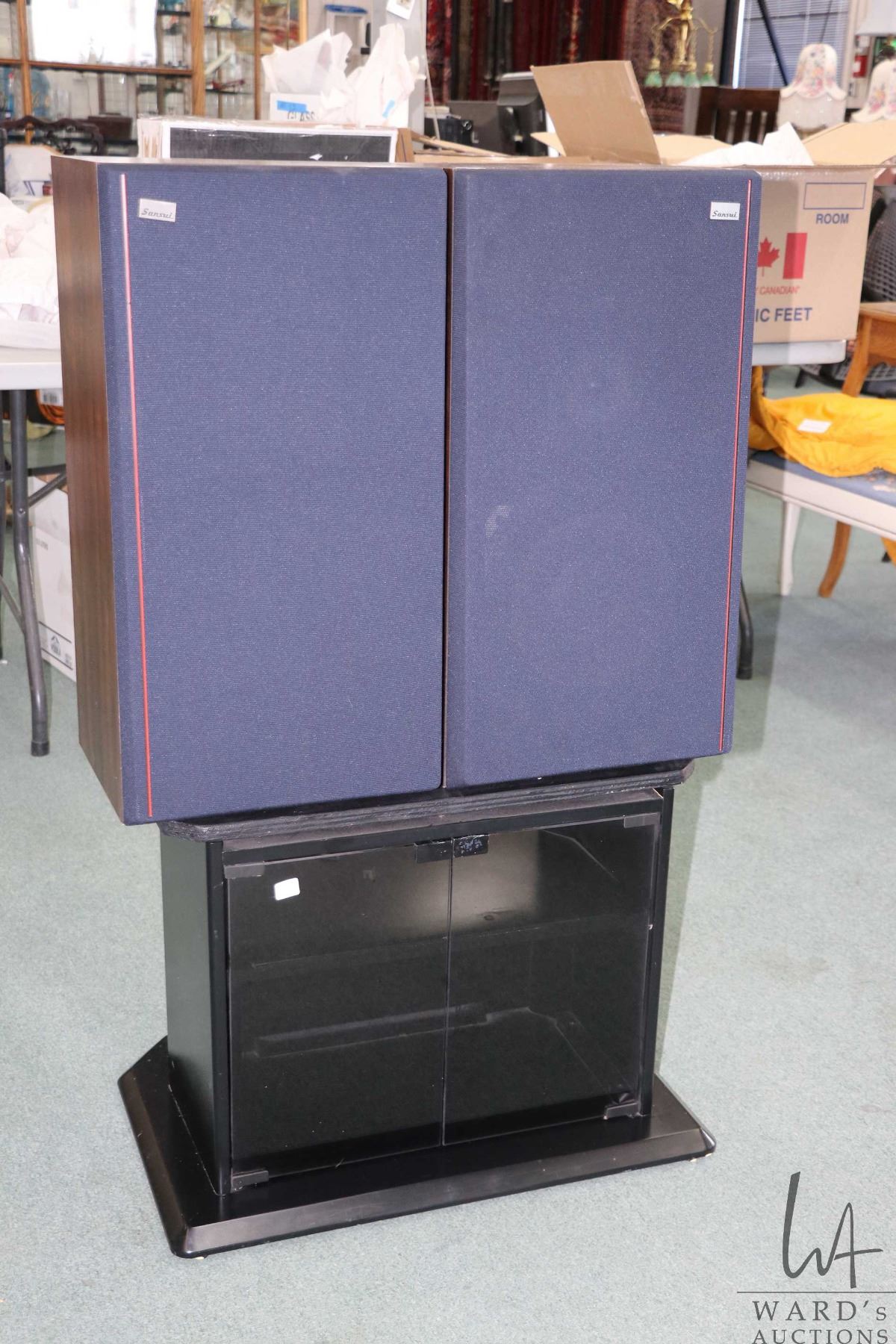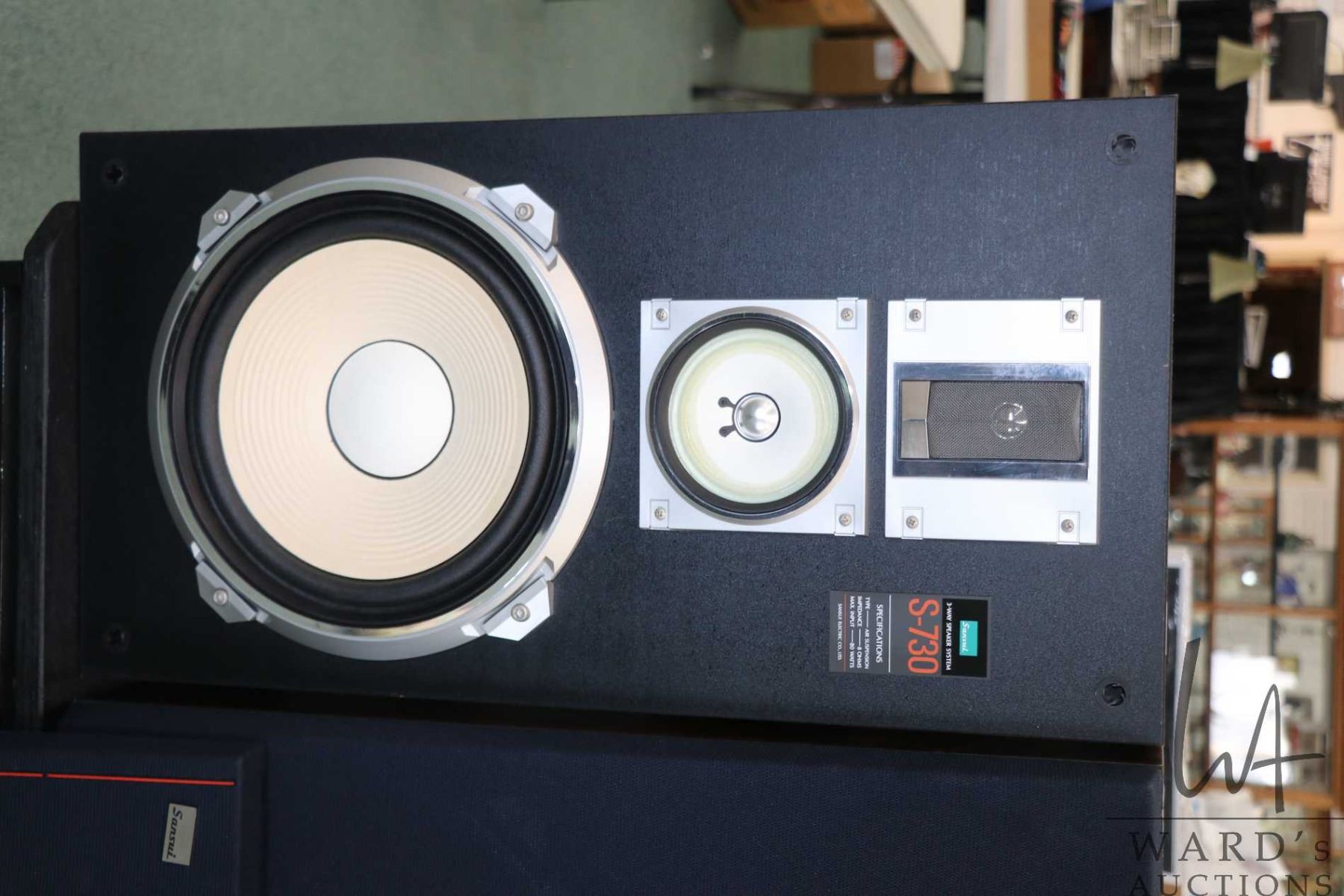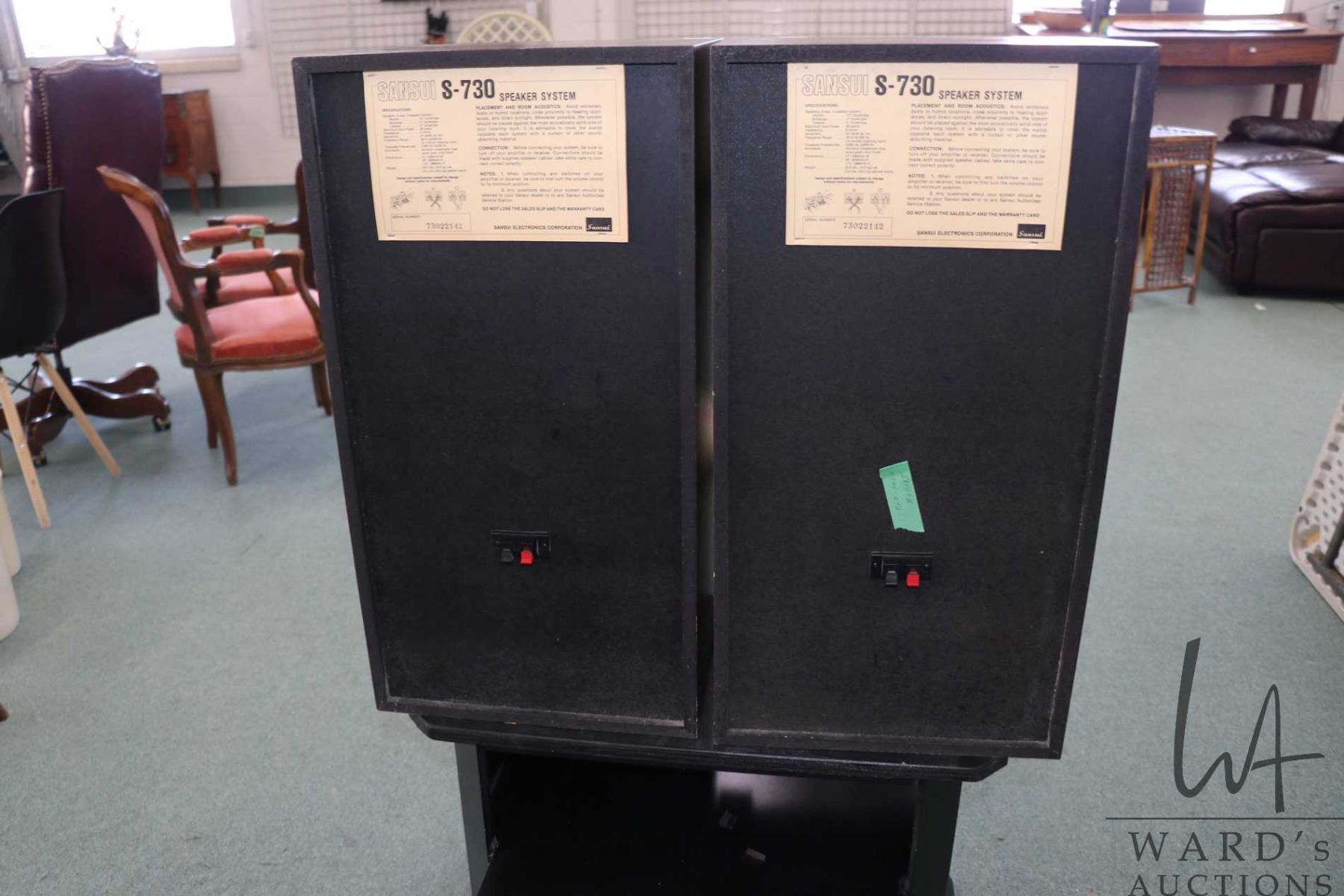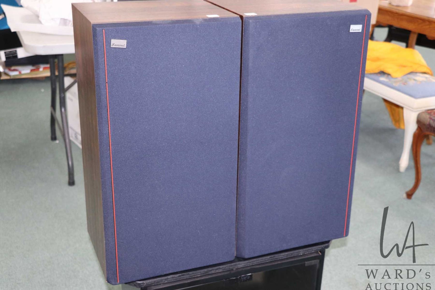 Lot 194 Pair of vintage Samsui S730 loud speakers with original removable speaker covers plus small componen