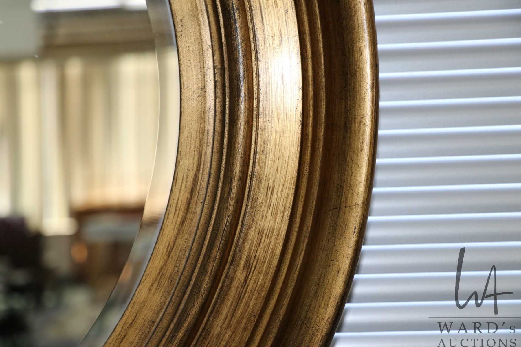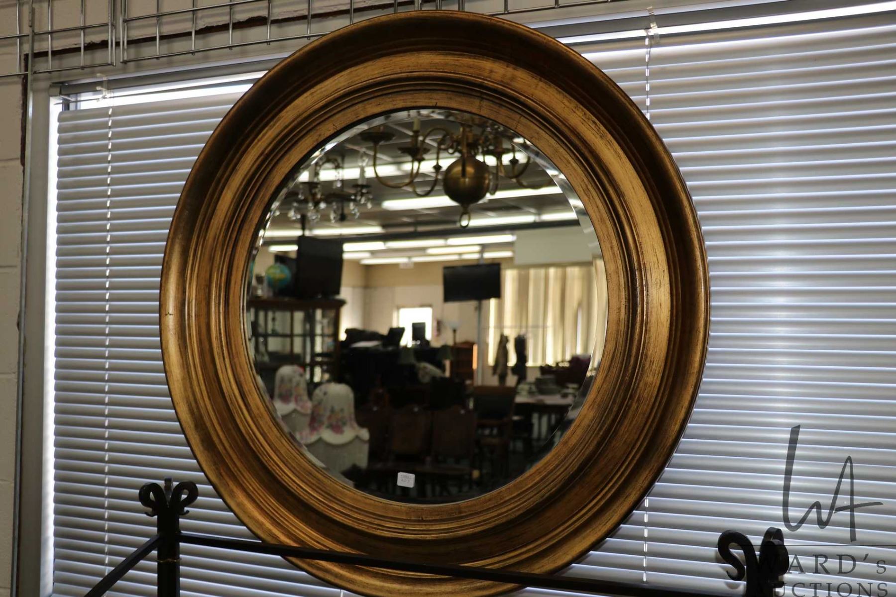 Lot 207 Modern gilt framed beveled wall mirror 34" outside diameter