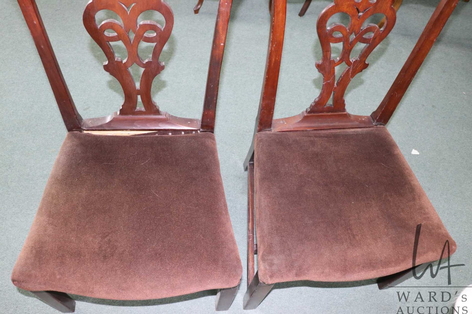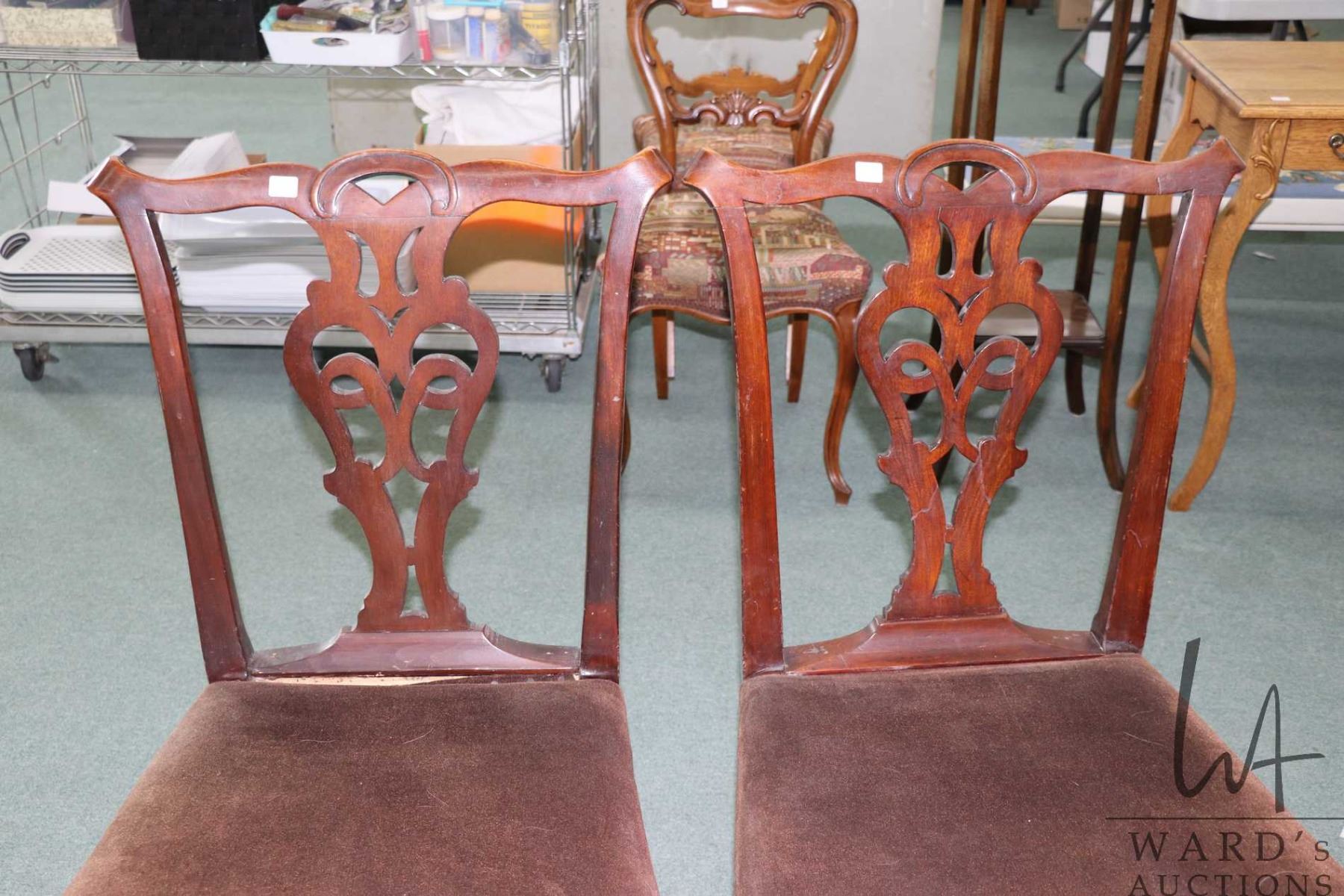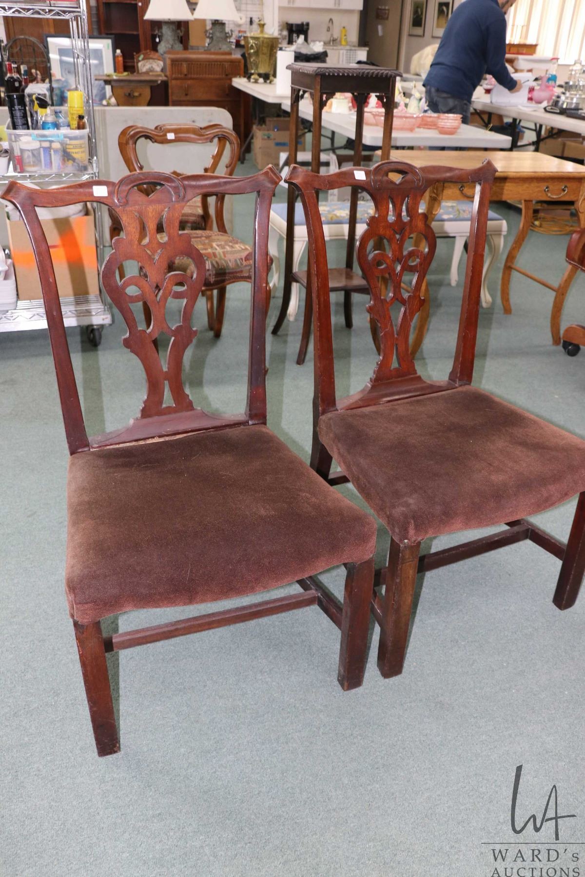 Lot 212 Pair of antique side chairs with fretwood backs and upholstered seats