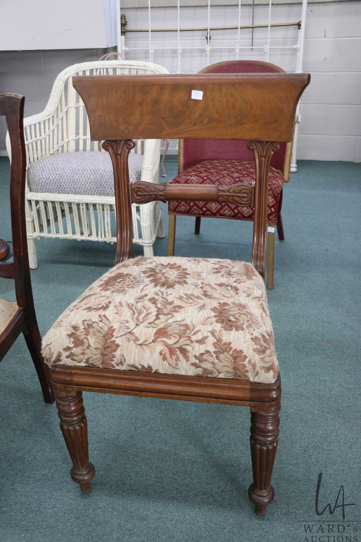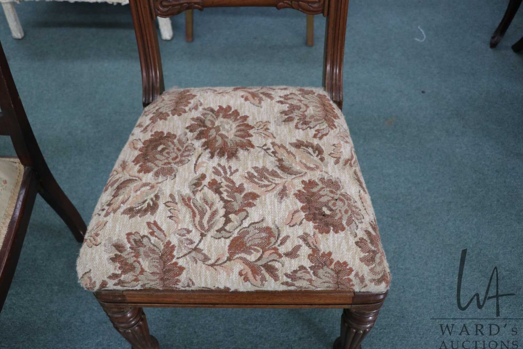 Lot 216 Antique side chair with reeded supports and upholstered seat