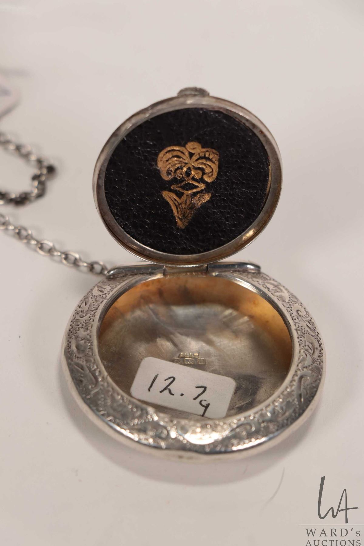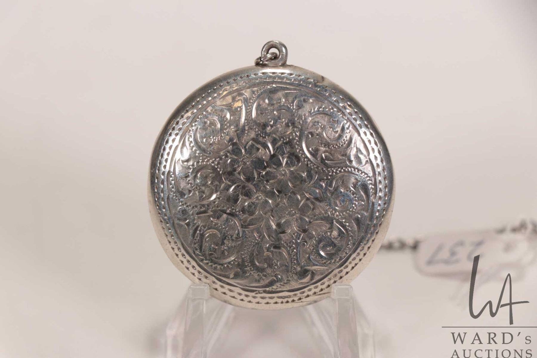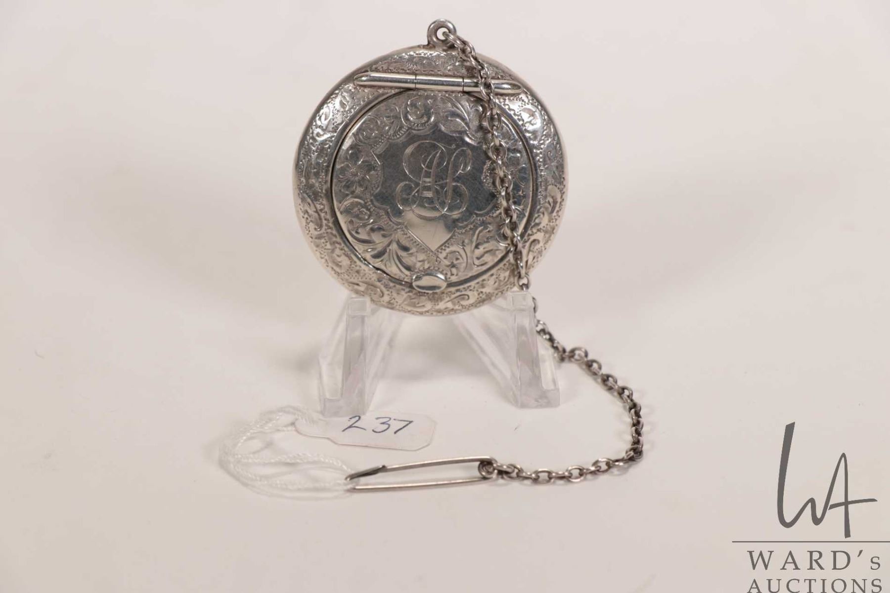 Lot 237 A small sterling silver Birmingham 1920 snuff case with chain and pin